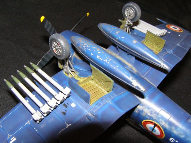 Собиралась модель "из коробки", с оглядкой на фото прототипа, больше месяца (работы много). От себя доработал заднюю стойку шасси проушиной для буксировки и тягой посадочного гака, добавил шланги на основные стойки. Также добавил в кабину пилота привязные ремни и доработал двигатель проводкой.