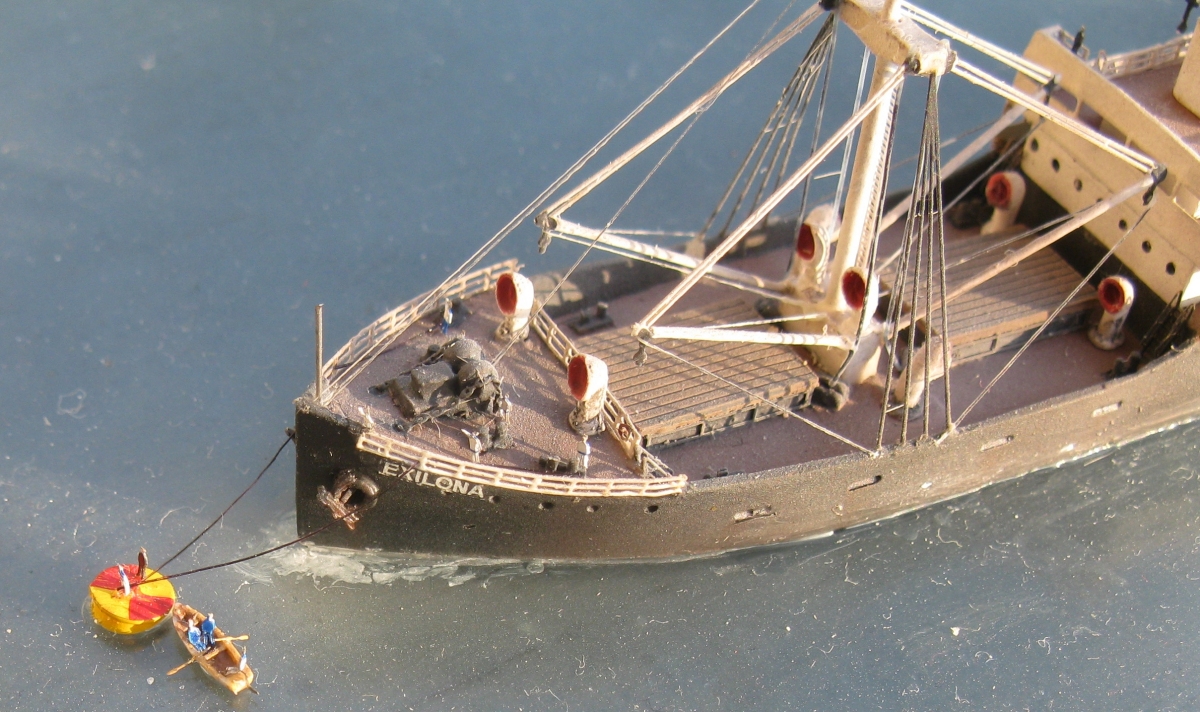 Модель Эксилона - Луз Кэннон, Малый трамп - ВСВ, желдорога - Вайт Энсайн, травло, детали, домики, фигурки - разные производители, кошка на крыше среднего здания и шхуна - самодел.