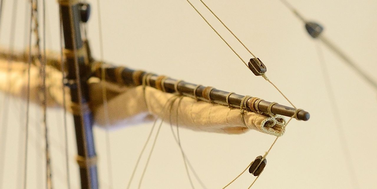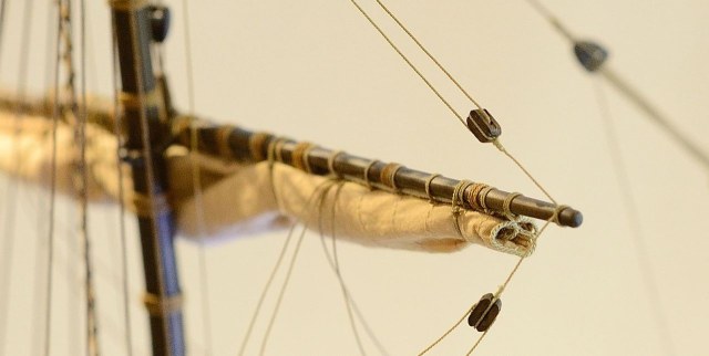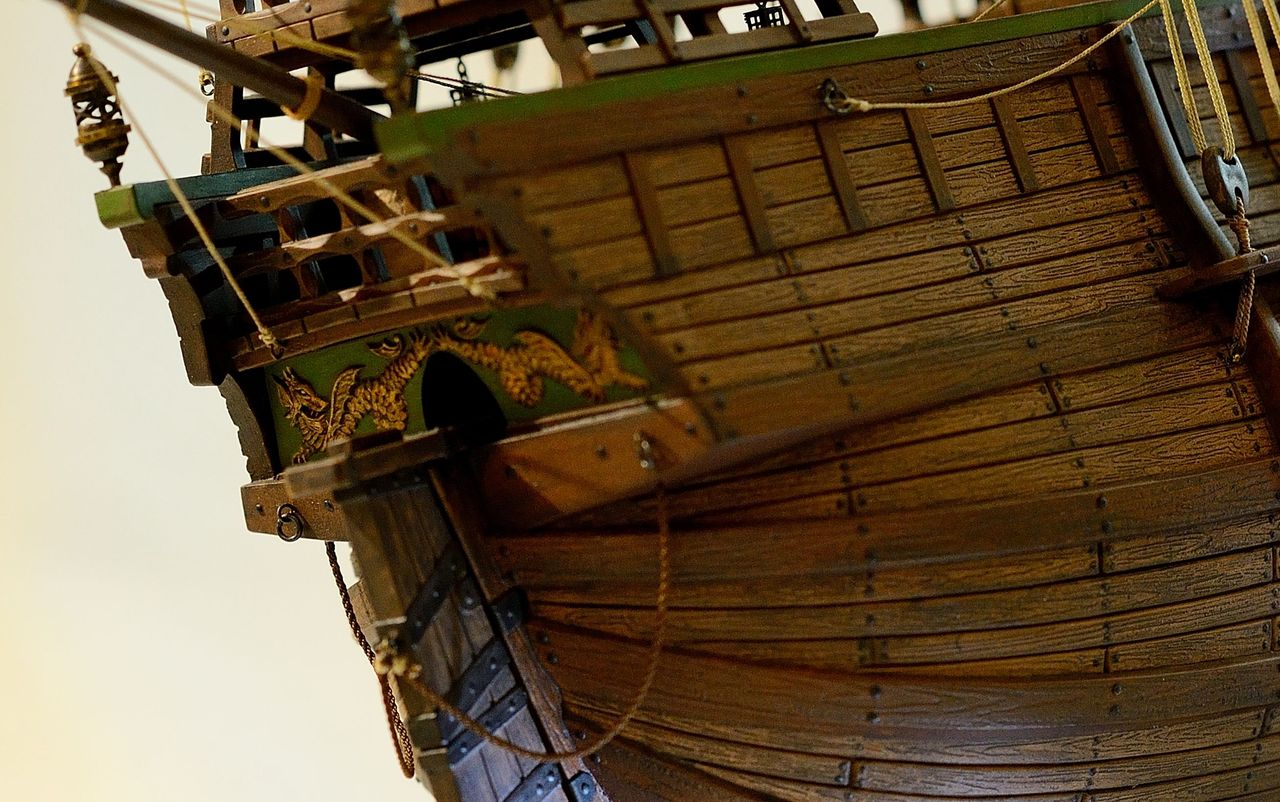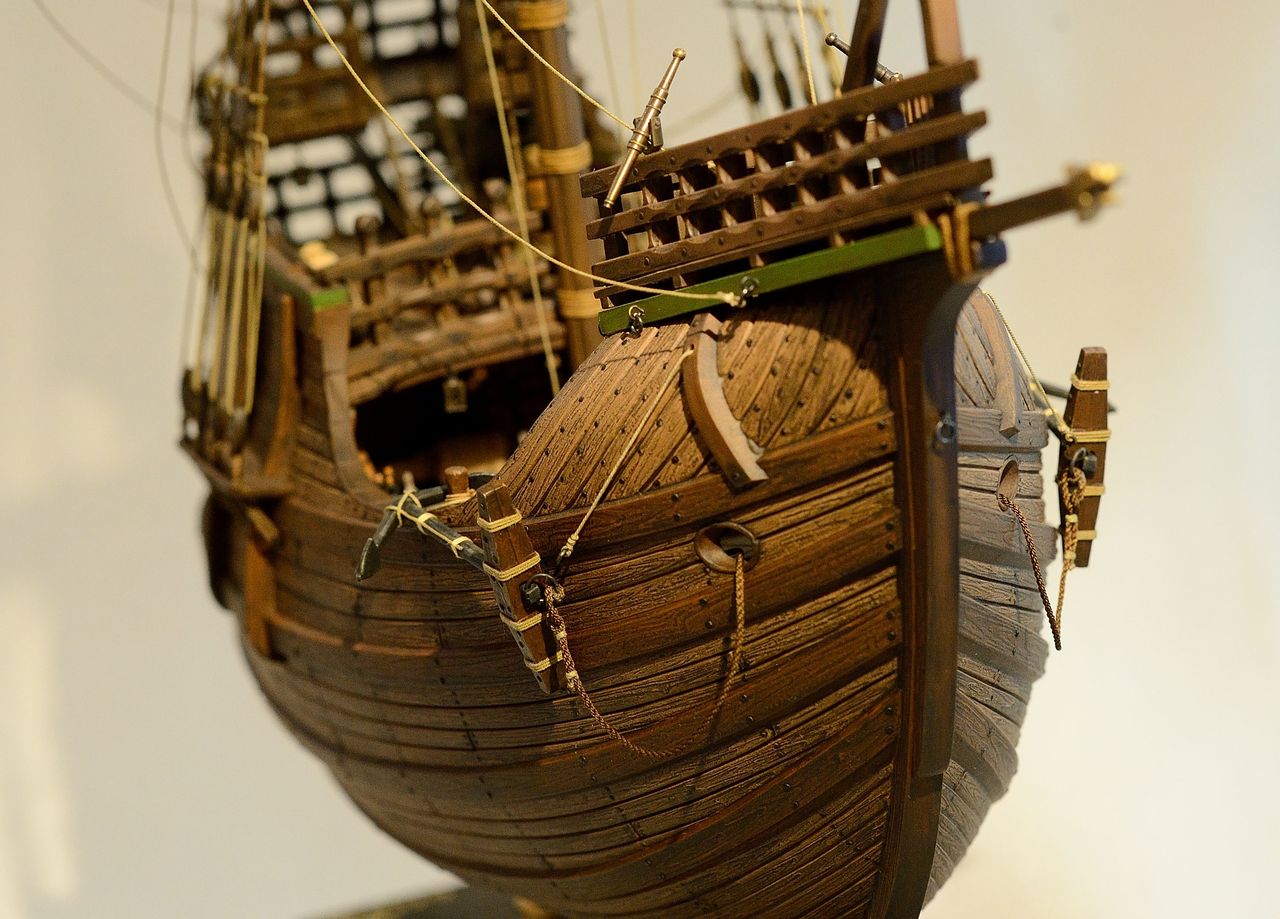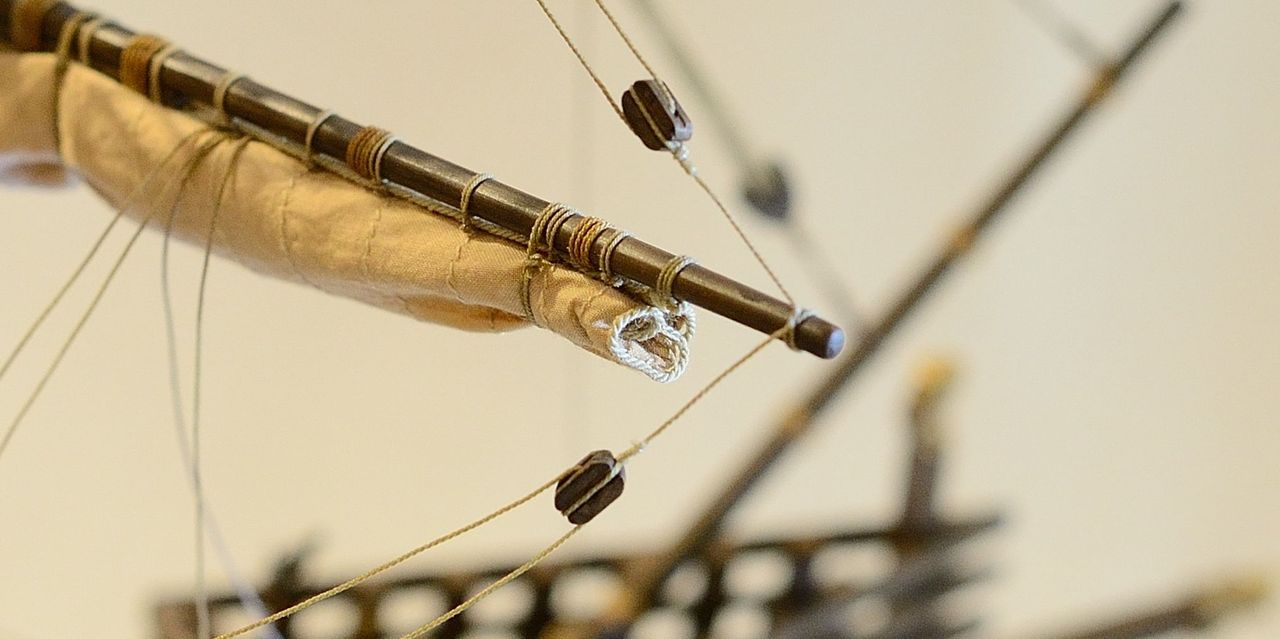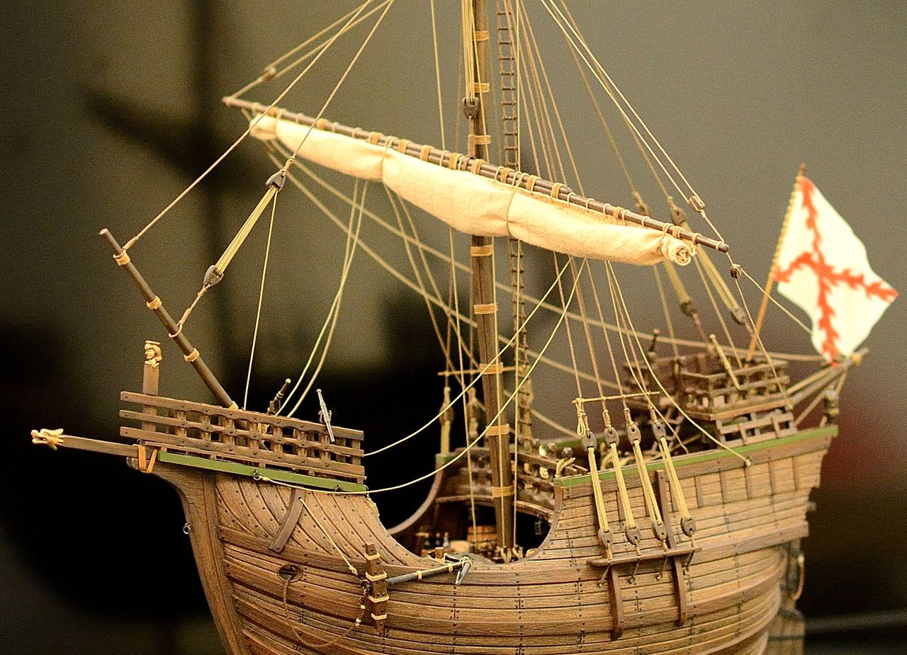 В оригинальной модели 15 века похоже, было 2 мачты - на корме в палубе есть отверстие, в которое раньше, скорее всего, была вставлена бизань мачта.