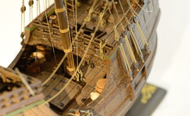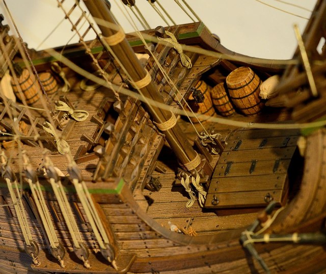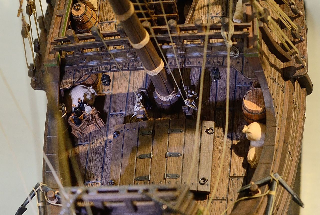 Бочки, мешки, ящики, бутылки, и прочая утварь, вообще супер! Корабль живой! Очень долго все рассматривал, всматриваясь во все мелочи. Очень хорошо все сделано!
