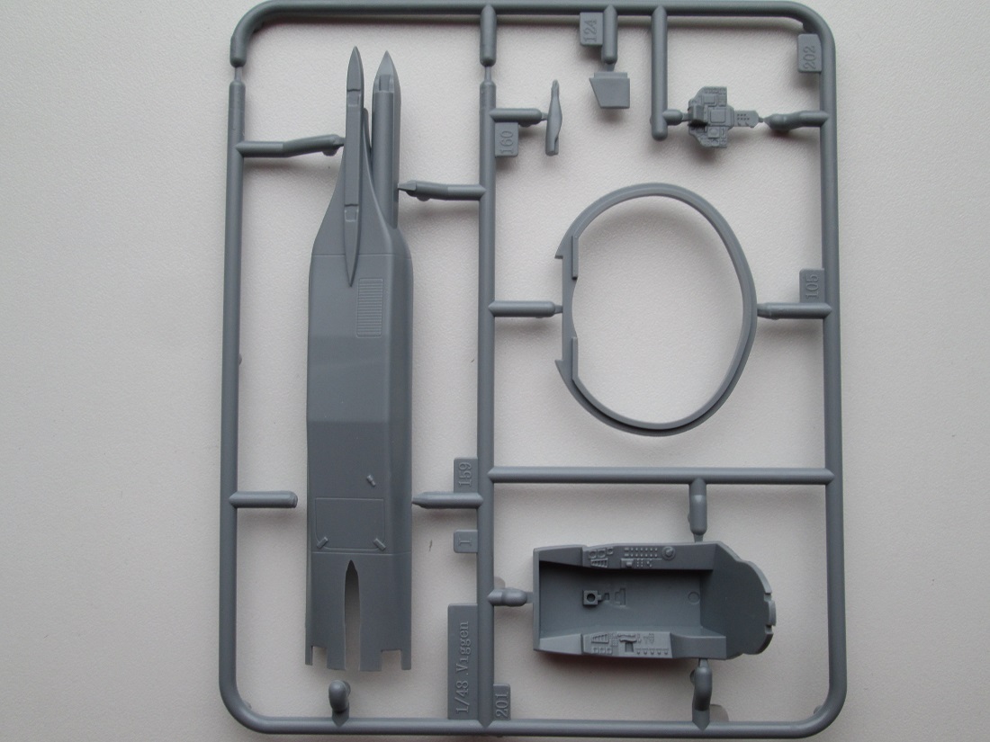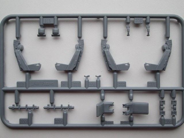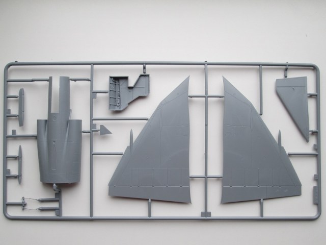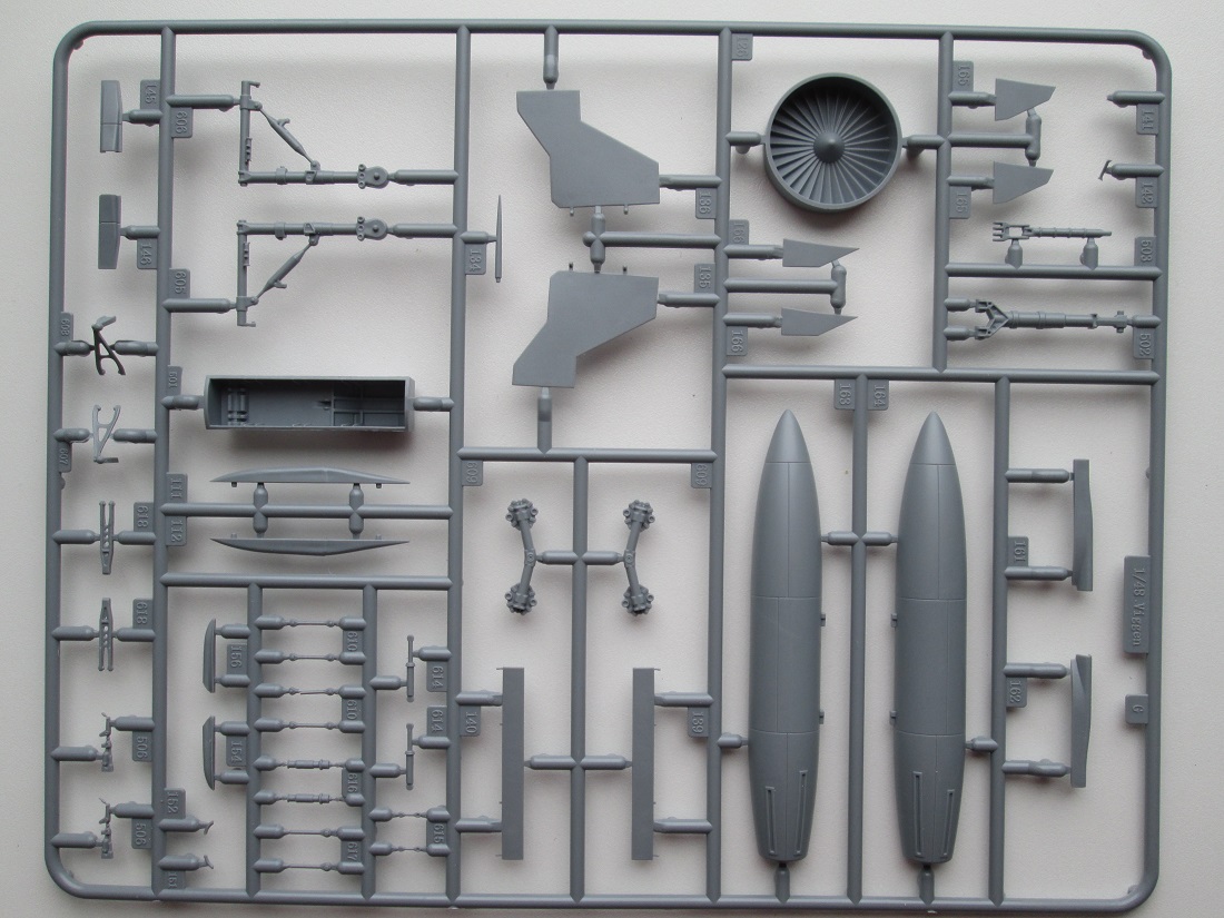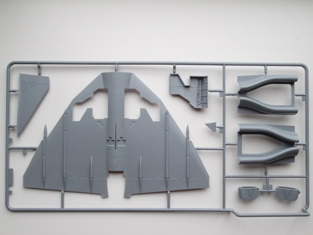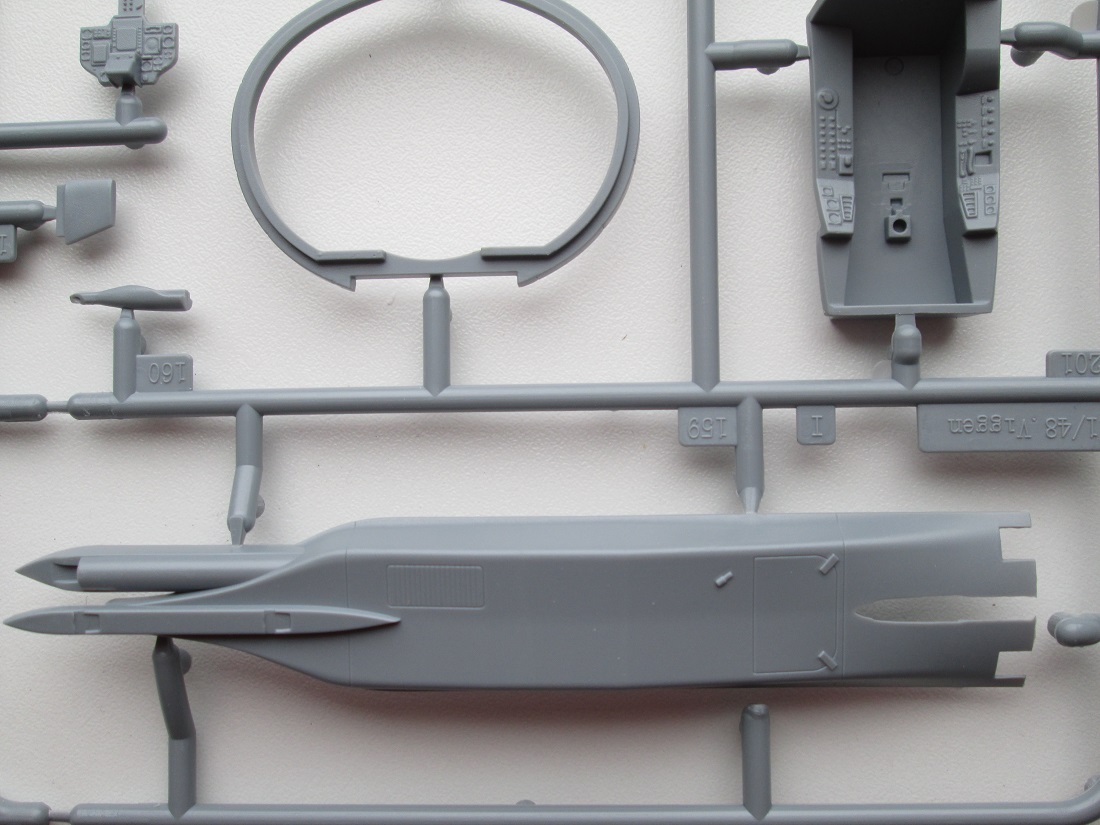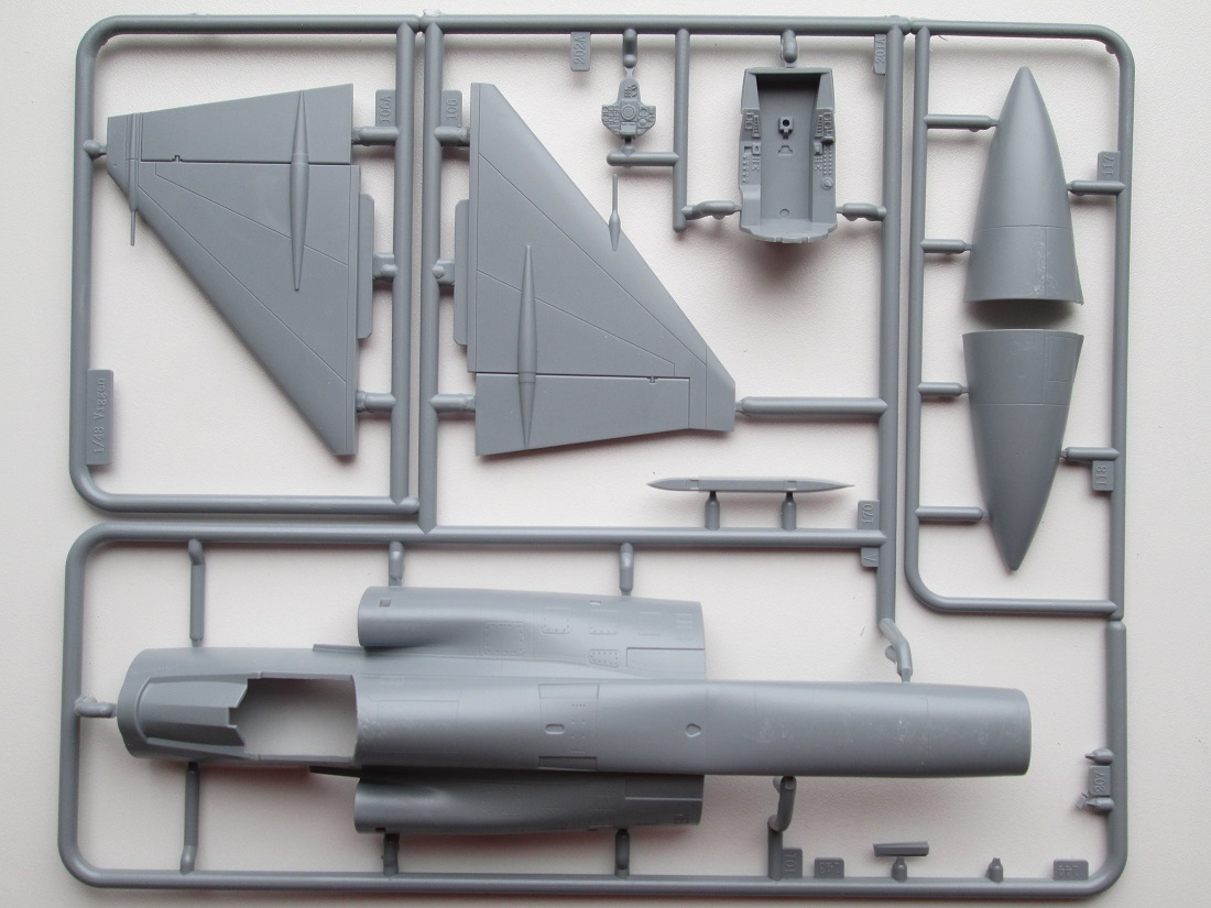 В красочной картонной коробке находится восемь литников с деталями модели самолета из серого пластика и один литник из прозрачного пластика это остекление фонаря кабины пилота. Все детали хорошего качества, без утяжин и облоя. Имеют тонкий и четкий крой, и детализацию в виде заклепочных швов и тех. лючков.