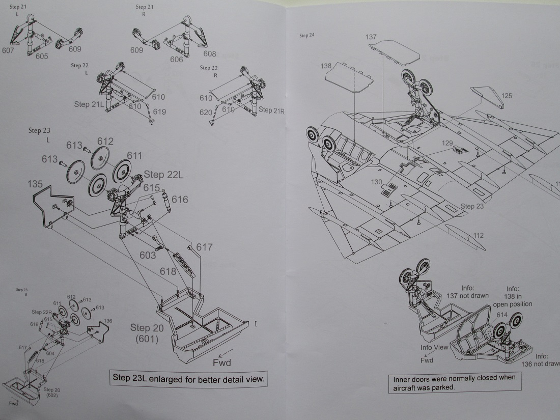 Ниши шасси и стойки опор имеют слабую деталировку, придется при постройке модели дополнить проводкой.