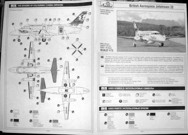 Всем доброго времени суток. Показываю очередную а-моделовскую новинку -  Jetstream 32. Пластик тот же самый, что и в предыдущем "Джетстриме" (обзор: http://karopka.ru/community/user/8686/?MODEL=400452 ), а вот декаль новая. Всего в наборе 144 детали. Цена в Киеве - 460 гривень.