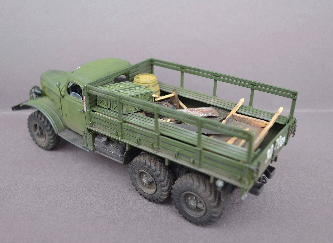 -мелочевка в кузове (военные ящики и боченок фирмы Kondor), остальное мой самодел.
