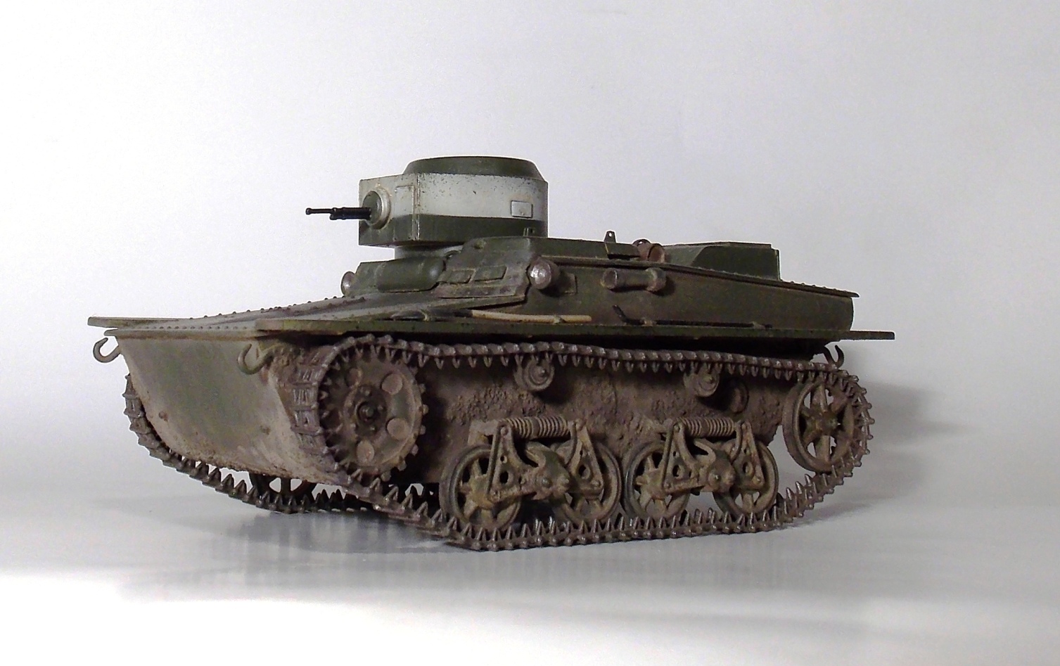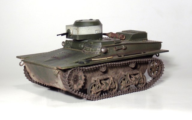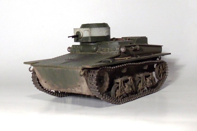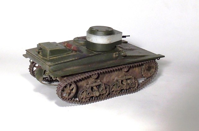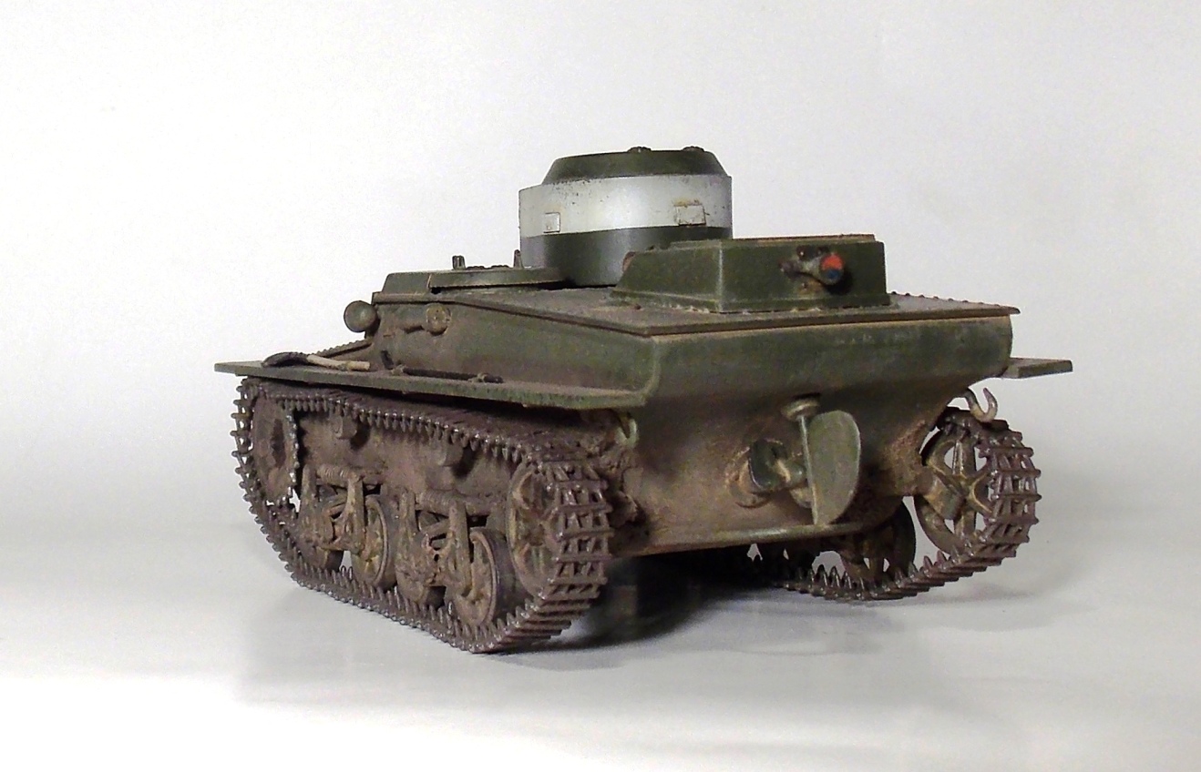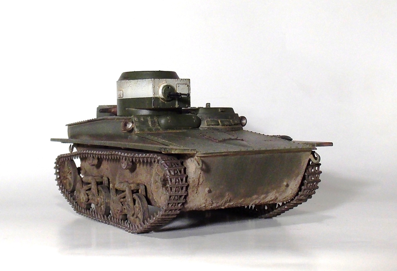 Представляю вашему вниманию очередную модель.Т-37 ,окрас под Большие Киевские маневры 1935 г.Захотелось сделать грязный танк,с объемной грязью.По качеству изготовления модели претензий нет,разве что траки очень мелкие и отделить их от литника идеально ровно не получается.В идеале надо каждый трак обработать.Ну и фара.Просто литой кусок пластика. Травло положить китайцы смогли,а к фаре кусок пластика прозрачного нет.Фару высверливал ,стекло имитировал лаком.