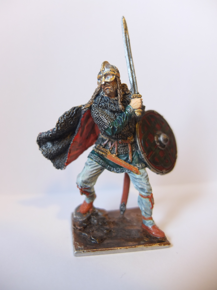 Всем, добрый день! Ярл от EK Castings, первая достойная для меня фигура, окрашен кистью, акрилом звезда, и темперой ПВА.