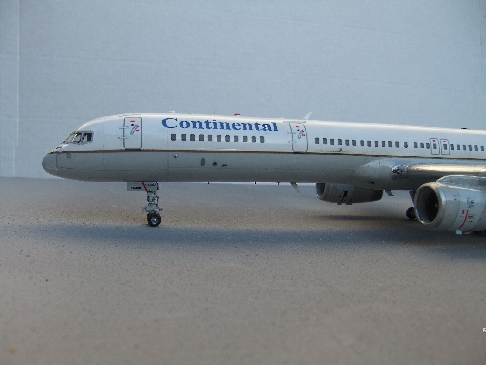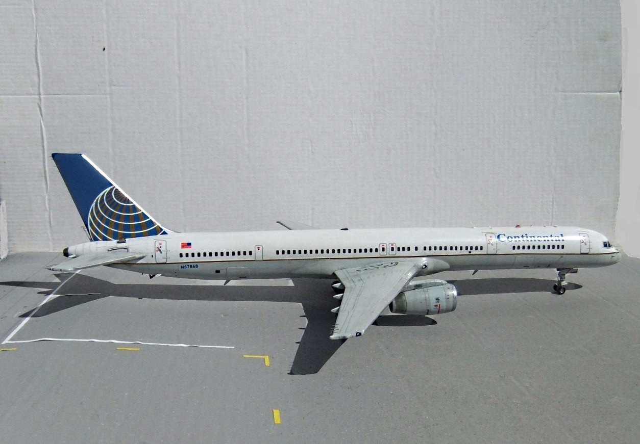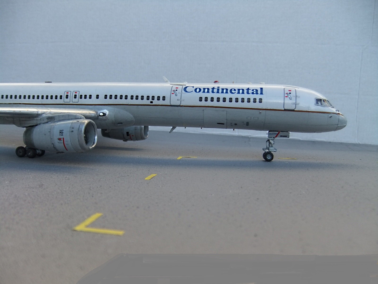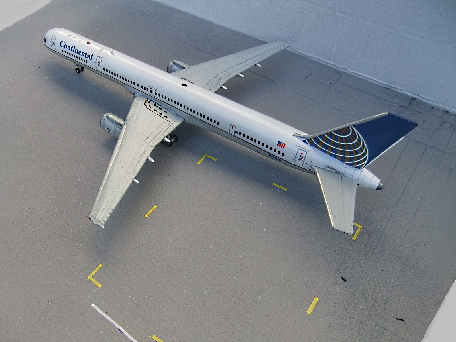 Что-то удалось довести до нормального уровня, немного подправил, и дополнил переднюю стойку, основные были короткими, так-что модель стояла на движках, их пришлось надставить. Движки так-же были подвергнуты оперативной подгонки, в общем какую-бы деталь не взял везде кол да яма. Деки не плохие, по крайне мере не рассыпались, и приварились без проблем, но она оказалась скудна, так-что добавлял все от старых наборов, это что касаемо движков. По ходу обрастания прибамбасами всяческой мелочевкой, датчиками, антеннами немного потискал модель, в последствии чего пришлось помыть. Красил-верх "белый" из баллона, низ как обычно кистью. Американская авиакомпания Continental, базируется в Хьюстоне, парк самолетов состоит из 4-ех семейств Боиногов, может кому интересно можете почитать тутhttp://flyertalk.ru/showthread.php?t=974, поработать с этим Боингом 757-300 пришлось от души, точно время дату не засекал, но на все примерно месяц ушел, что получилось судить вам, всем приятного просмотра.