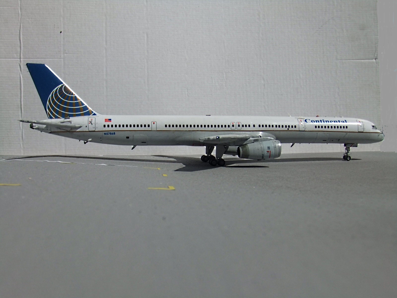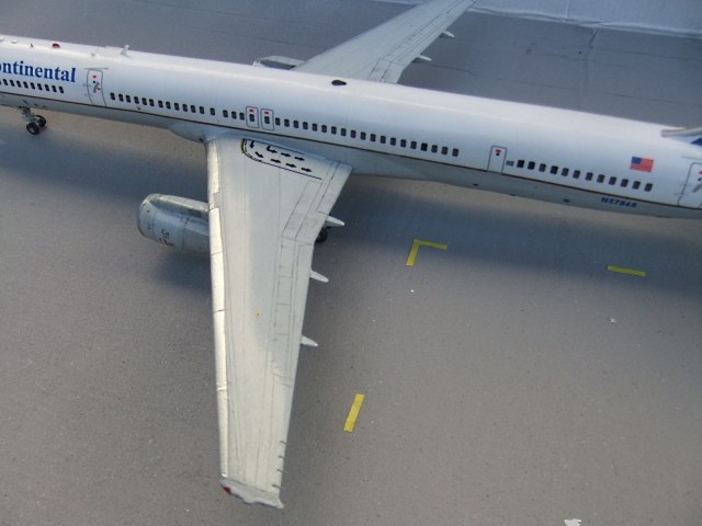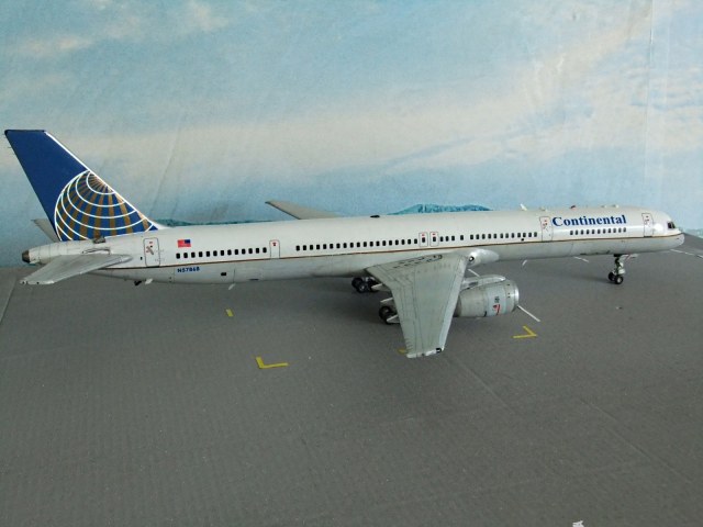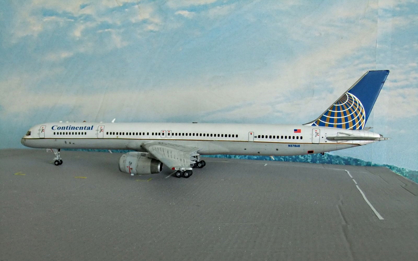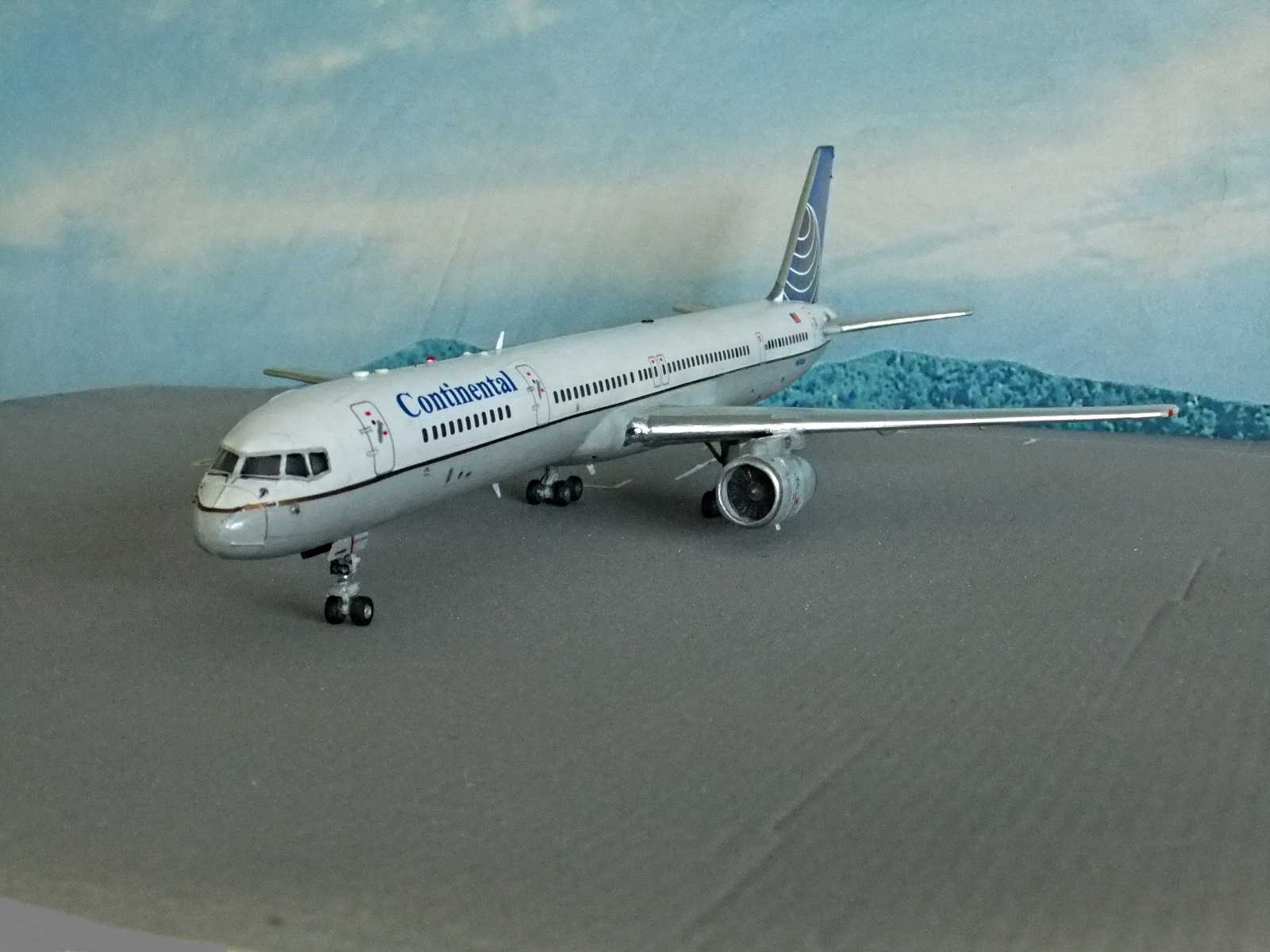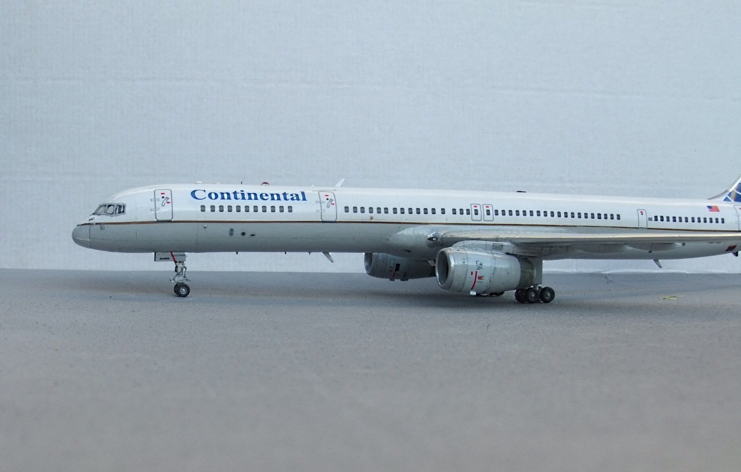 Что-то удалось довести до нормального уровня, немного подправил, и дополнил переднюю стойку, основные были короткими, так-что модель стояла на движках, их пришлось надставить. Движки так-же были подвергнуты оперативной подгонки, в общем какую-бы деталь не взял везде кол да яма. Деки не плохие, по крайне мере не рассыпались, и приварились без проблем, но она оказалась скудна, так-что добавлял все от старых наборов, это что касаемо движков. По ходу обрастания прибамбасами всяческой мелочевкой, датчиками, антеннами немного потискал модель, в последствии чего пришлось помыть. Красил-верх "белый" из баллона, низ как обычно кистью. Американская авиакомпания Continental, базируется в Хьюстоне, парк самолетов состоит из 4-ех семейств Боиногов, может кому интересно можете почитать тутhttp://flyertalk.ru/showthread.php?t=974, поработать с этим Боингом 757-300 пришлось от души, точно время дату не засекал, но на все примерно месяц ушел, что получилось судить вам, всем приятного просмотра.