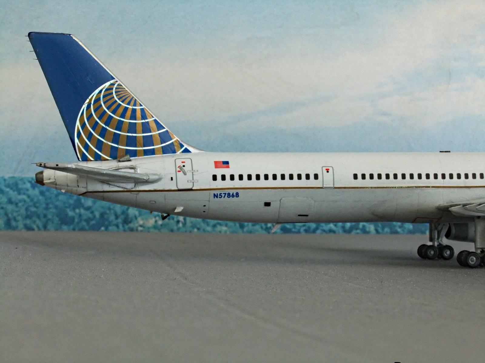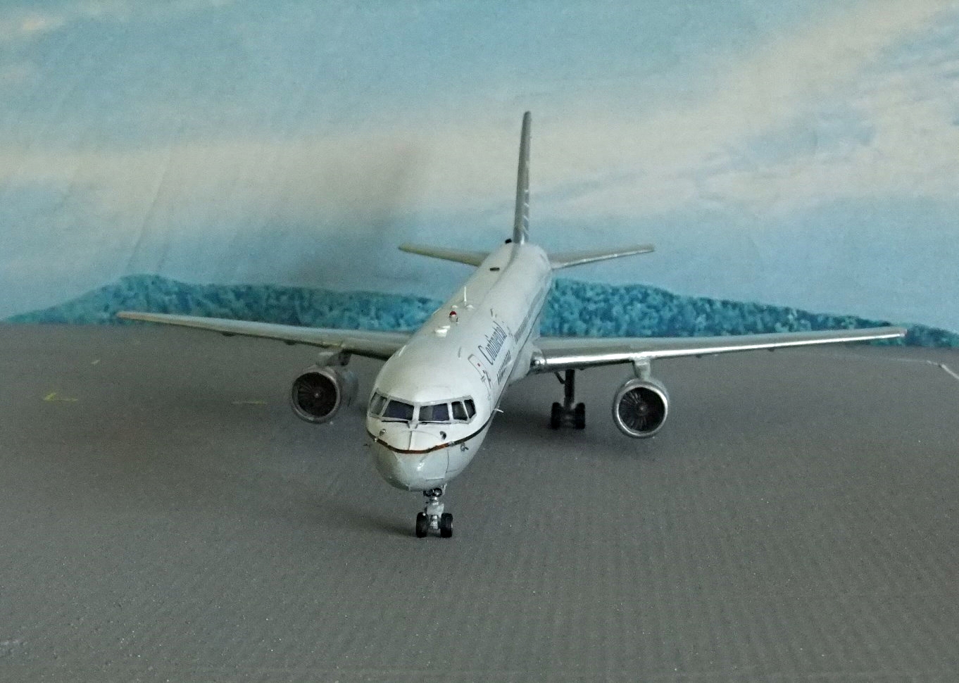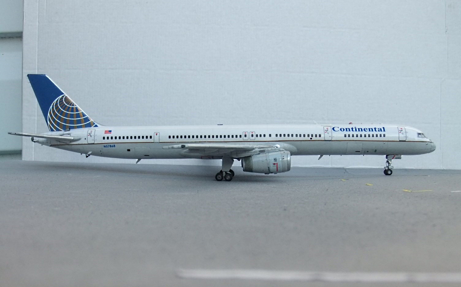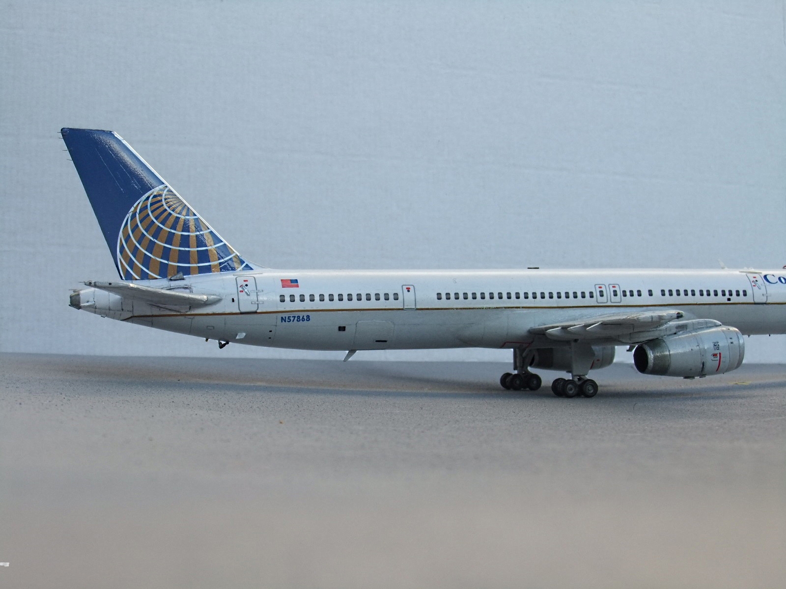 Что-то удалось довести до нормального уровня, немного подправил, и дополнил переднюю стойку, основные были короткими, так-что модель стояла на движках, их пришлось надставить. Движки так-же были подвергнуты оперативной подгонки, в общем какую-бы деталь не взял везде кол да яма. Деки не плохие, по крайне мере не рассыпались, и приварились без проблем, но она оказалась скудна, так-что добавлял все от старых наборов, это что касаемо движков. По ходу обрастания прибамбасами всяческой мелочевкой, датчиками, антеннами немного потискал модель, в последствии чего пришлось помыть. Красил-верх "белый" из баллона, низ как обычно кистью. Американская авиакомпания Continental, базируется в Хьюстоне, парк самолетов состоит из 4-ех семейств Боиногов, может кому интересно можете почитать тутhttp://flyertalk.ru/showthread.php?t=974, поработать с этим Боингом 757-300 пришлось от души, точно время дату не засекал, но на все примерно месяц ушел, что получилось судить вам, всем приятного просмотра.