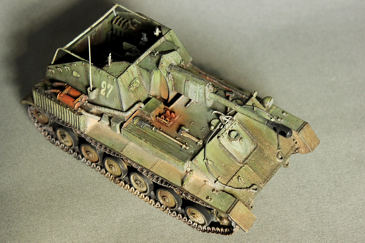 Красил акрилом Mig Ammo, попытался сделать модуляцию, вроде получилось, хотя судить вам. Фильтры, смывки, подтеки, пигменты - АК и Mig Ammo. Траки чернил при помощи quick rust от Wilder.