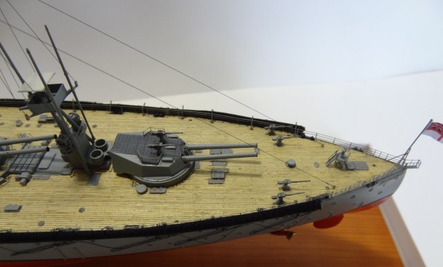 Инструкция у Звезды не идеал, но у Понтоса (конкретно для Дредноута) и вовсе откровенно никуда (есть ошибки в нумерации, куча деталей даны по принципу: догадайся сам – куда, зачем, для чего). Почему-то палуба (тоже Понтос из набора) легла со смещением где-то на 0,5 мм, кто виноват (я, пластик или дерево) так и не понял. Приклеилась самоклейкой без нареканий (за два, два с половиной месяца не отклеилась, не вспучилась).