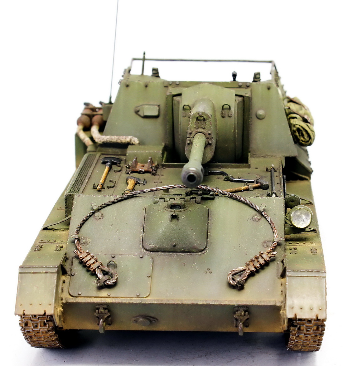 очень понравилась работа! есть одно "замечание", стоит немного ПРИПЫЛИТЬ диски ходовой...и потом, почему ЖУ-ЖУ? мой отец, фронтовик и говорил, что у них они именовались - "ПРОЩАЙ РОДИНА" ...