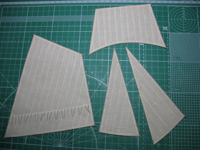 Долго не мог определиться с парусами. Недели две или три собирал информацию, рассматривал различные технологии. Выбирал из двух: либо продергивание нити, либо склейка по методу Дмитрия Шевелева. Остановился на последнем варианте и, буквально, за два-три дня паруса были полностью готовы.