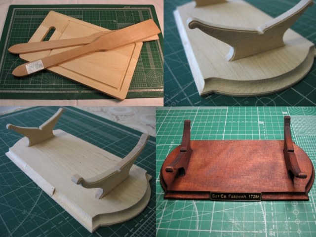 Подставку сделал из кухонных лопаток и разделочной доски.