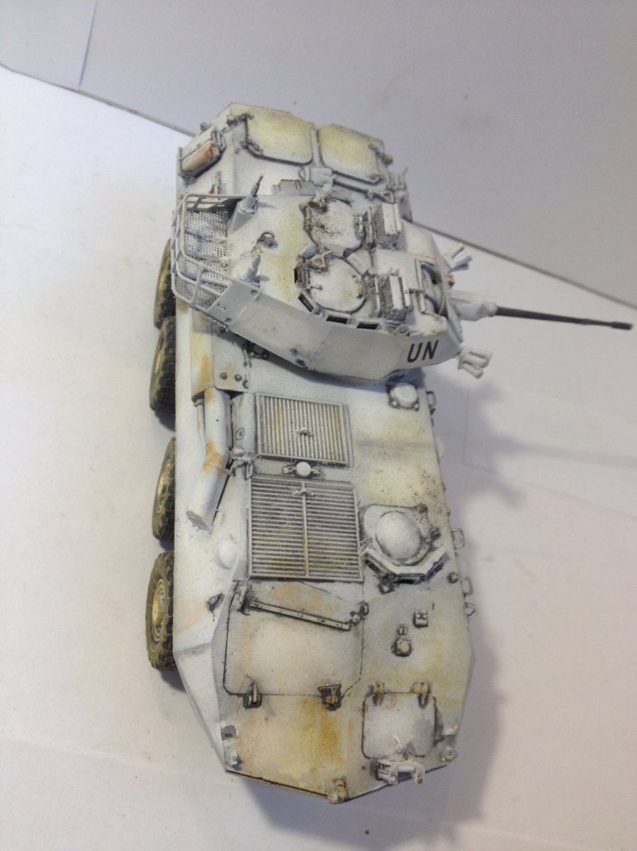 Моя первая модель бронетехники. Купил за 1000 р ООНовский LAV-25 и решил использовать в качестве отработки новых для себя приемов моделизма. Здесь я впервые попробовал сделать : подтеки, смывка, работа с пигментами, першейдинг. Все делал не опираясь на матчасть, как душе было угодно )