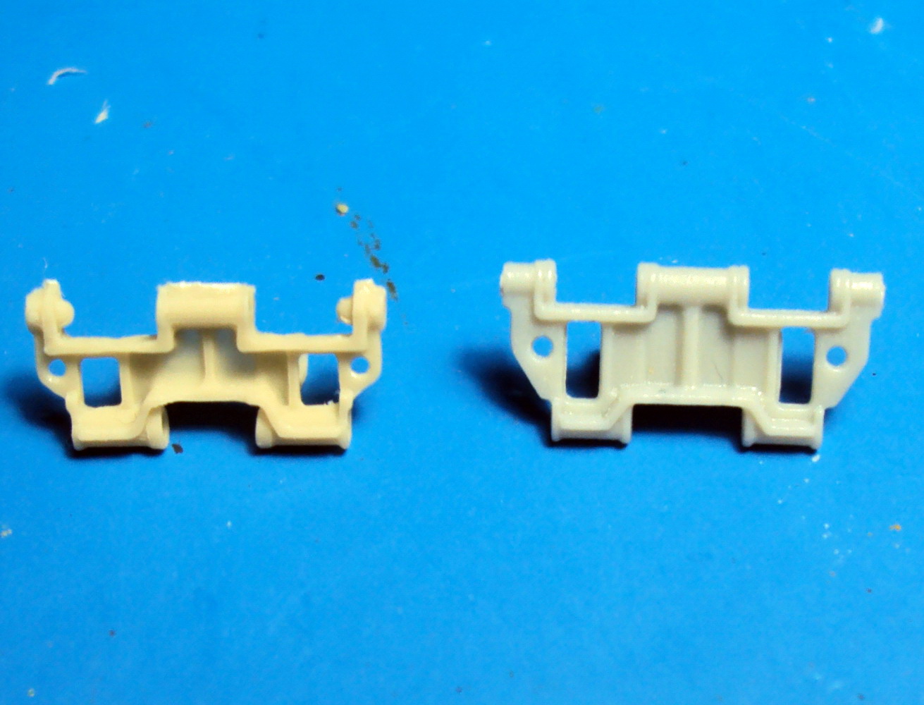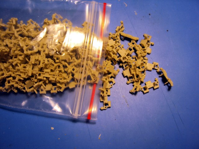 Для сравнения сфотографировал траки из набора ЗСУ "Шилка" рядом со смоляными деталями.