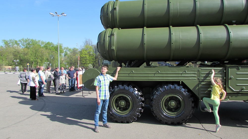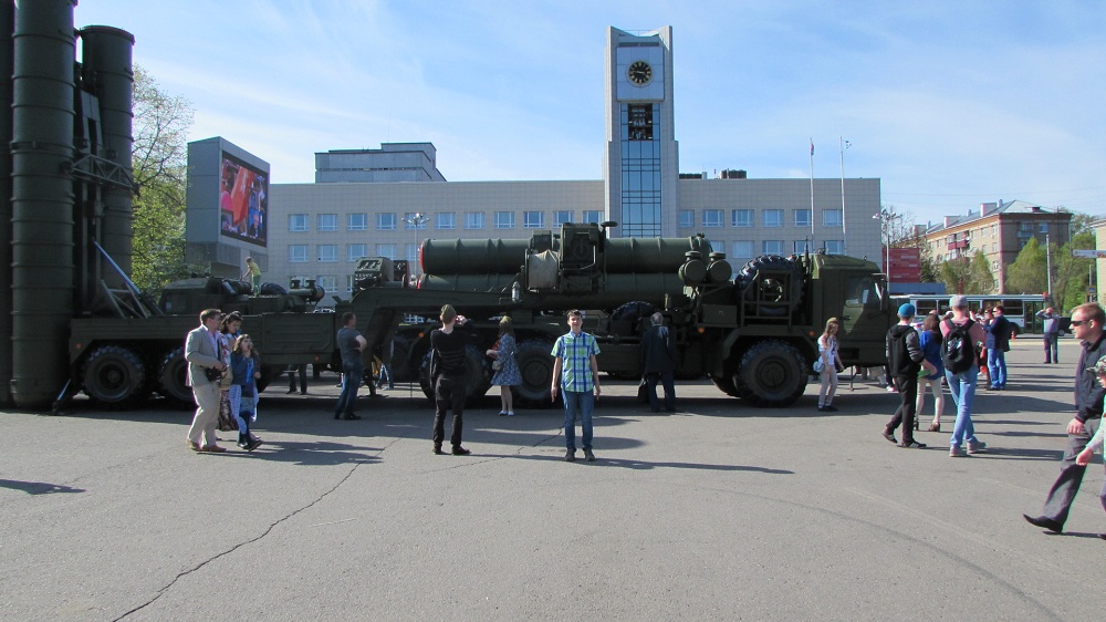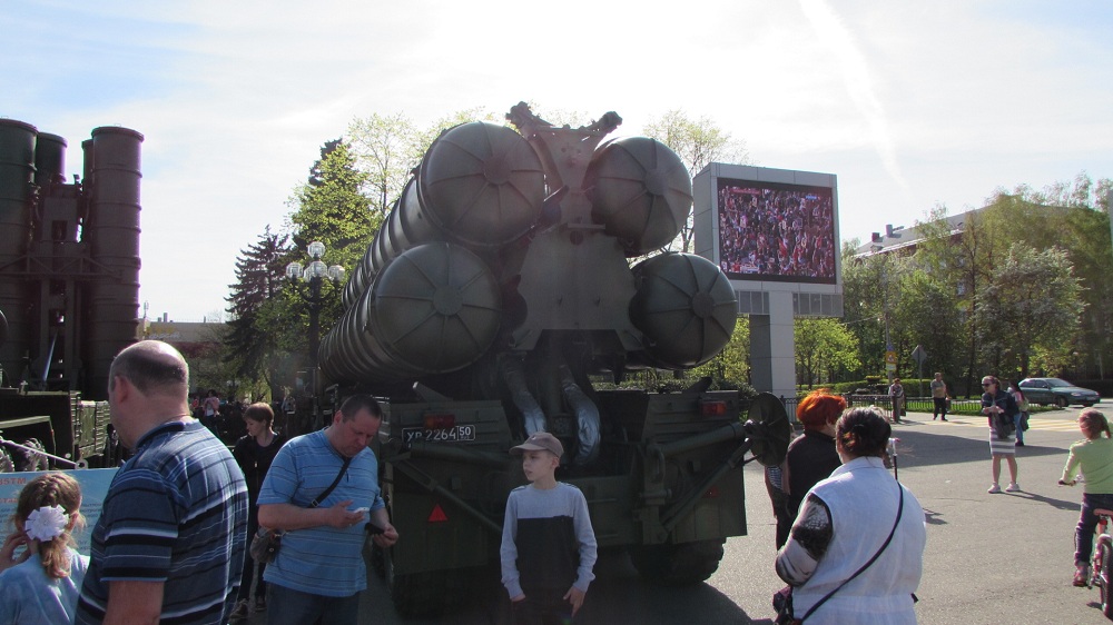 Вот такие две пусковые установки вчера после Парада Победы стояли на Централдьной Площади г.Мытищи