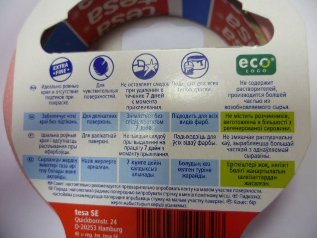 У меня tesa в рулоне шир. 38 мм, куплена на авторынке. Лучший из всех малярных скотчей, который пробовал. К сожалению, как и Тамийя, смачивается, т.е. подтекает по краю, если красить не напылением. Но для напыления идеален.