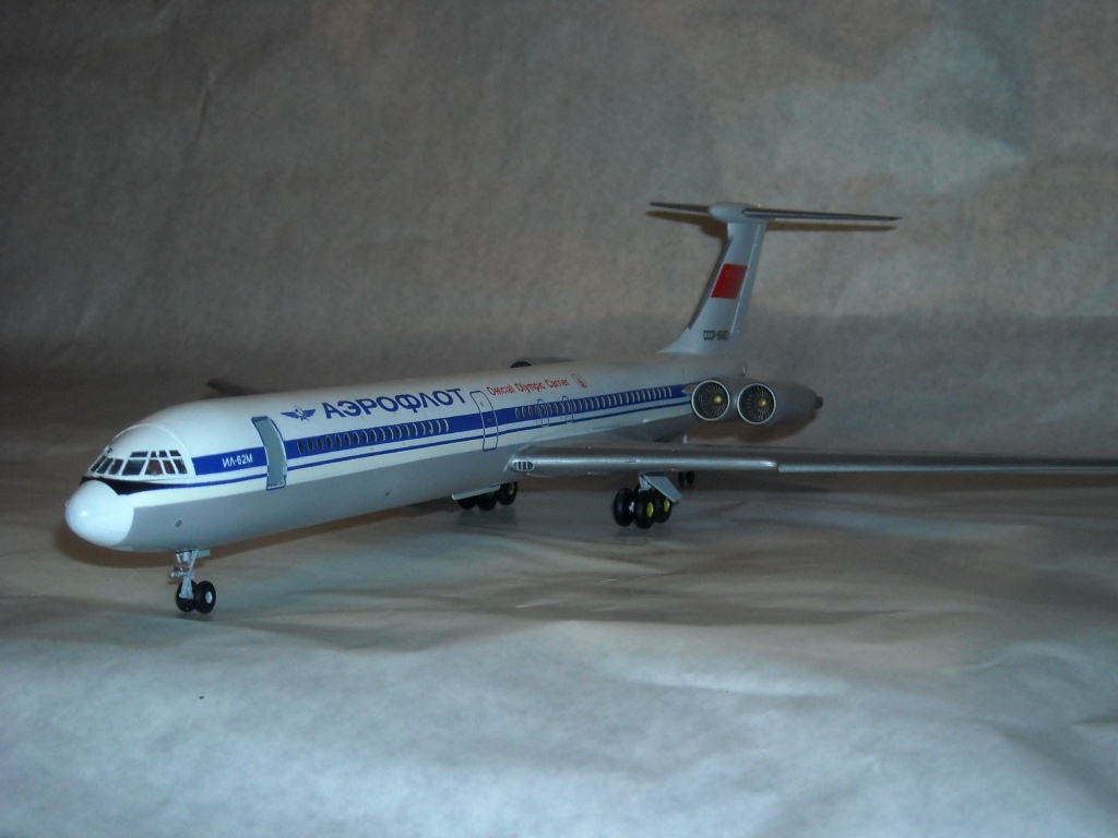 Доброго времени суток, господа. Вслед за Эйрбасом выставляю ещё одну модель. На сей раз она будет относиться уже к славной истории, олицетворяя некогда былую гордость и стать советского Аэрофлота. Ил-62М. Что можно сказать об этом самолёте? Конечно, в отличие от легендарного Ту-154, про который спето столько песен и снято немало фильмов с его участием, этот самолёт выделяется чуть меньше. Но всё-таки, на мой взгляд, машина эта оставила свой след в истории российской авиации: