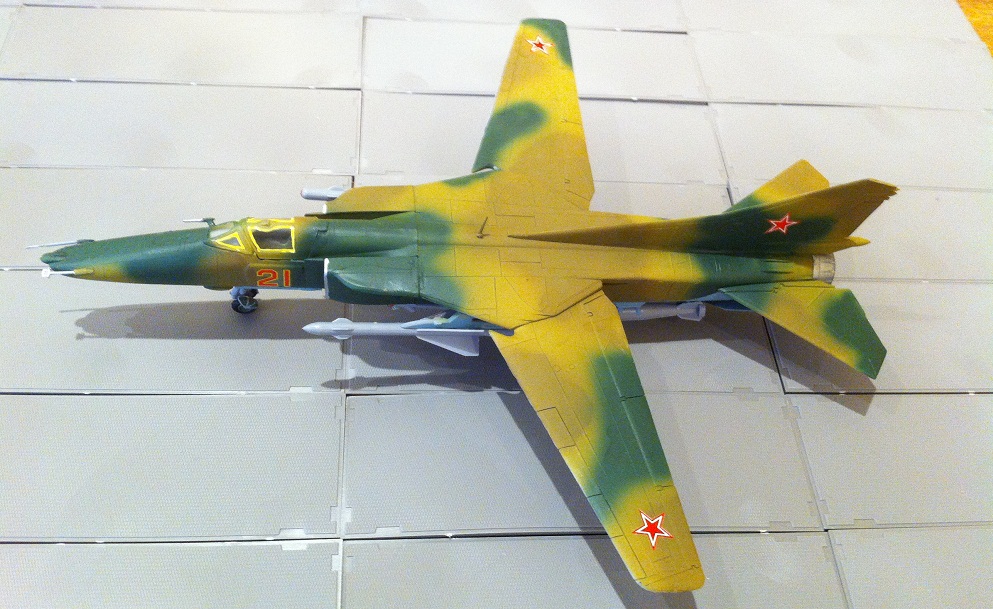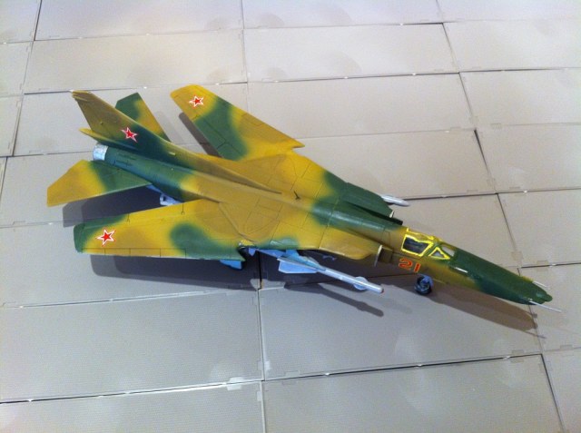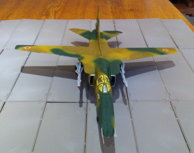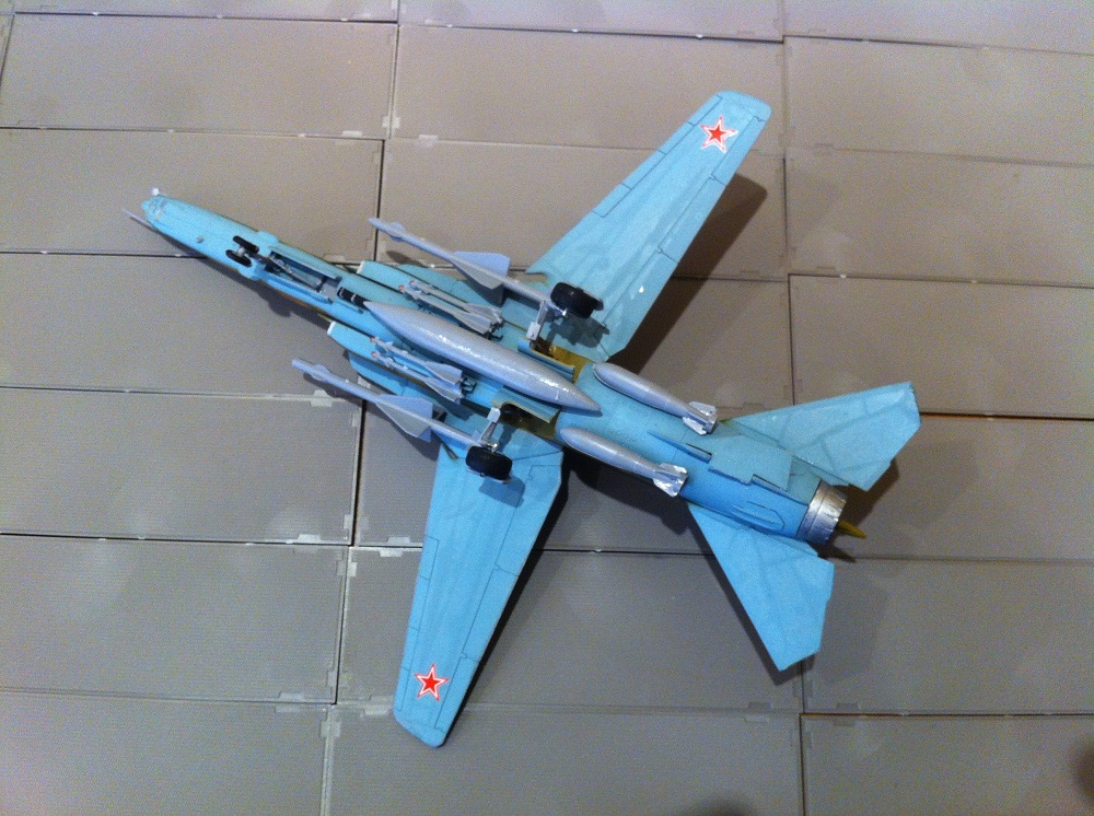 Что насчет герметика, то тут Автор точно попал в молоко, такого цвета не бывает! Камуфляж тоже очень далек от истины. Ракеты Р-23 на МиГ-27 тоже лишние! Тут, уж, автору надо было быть внимательнее с инструкцией. Пересмотрел несколько раз фото, так и не понял, в одном цвете ПТБ, Р-23, Р-60 и ФАБ-500, или нет?