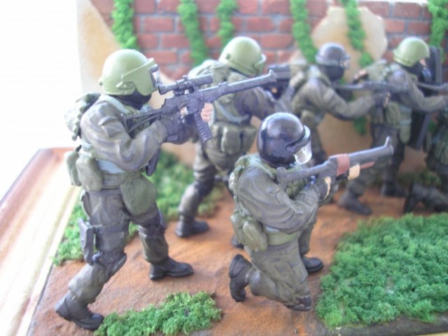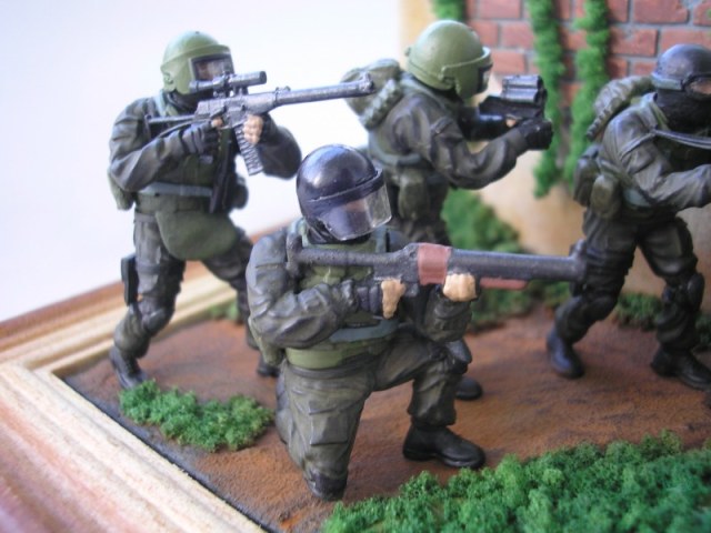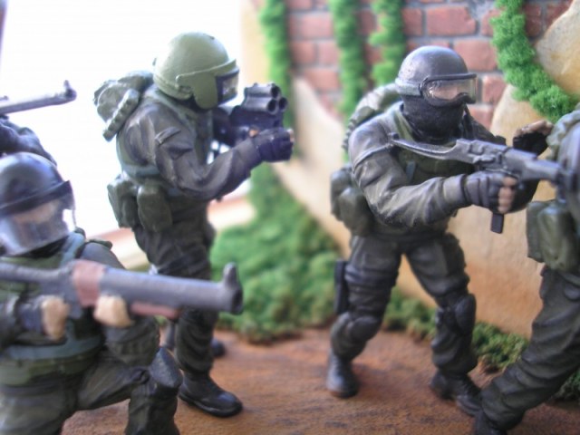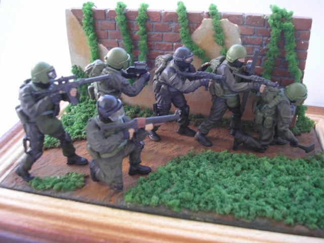 Мой личный совет, как я считаю правильным осваивать работу с фигурками - отложите пока на будущее масштабные диорамы, работайте лучше над одиночными фигурами или максимум виньетками на две-три фигурки. И фигуры лучше выбирать покачественней, а не эти китайские игрушки, которыми в девяностые торговали на на уличных лотках. И масштабных оснований тоже пока не надо, лучше набивайте руку на небольших подставках, с имитацией грунта и маленькими архитектурными элементами - начинать надо с малого.