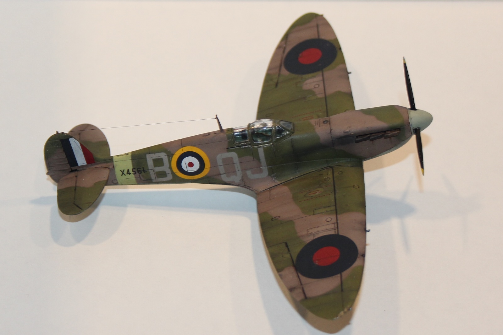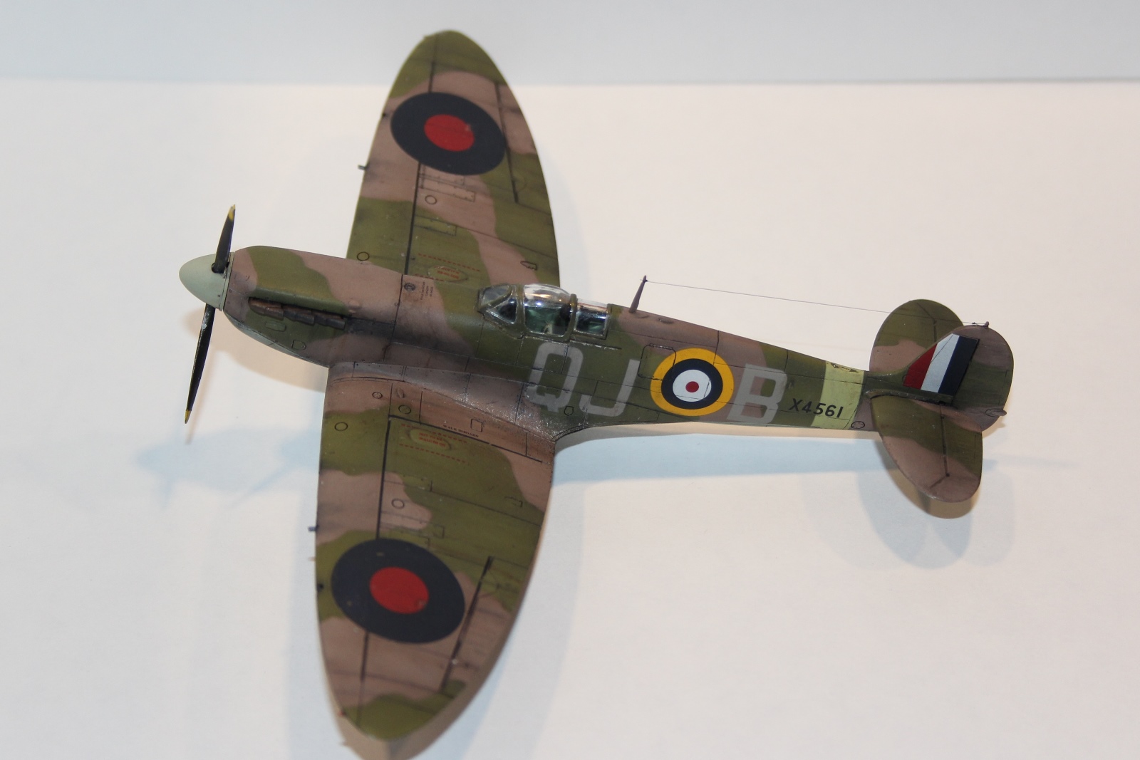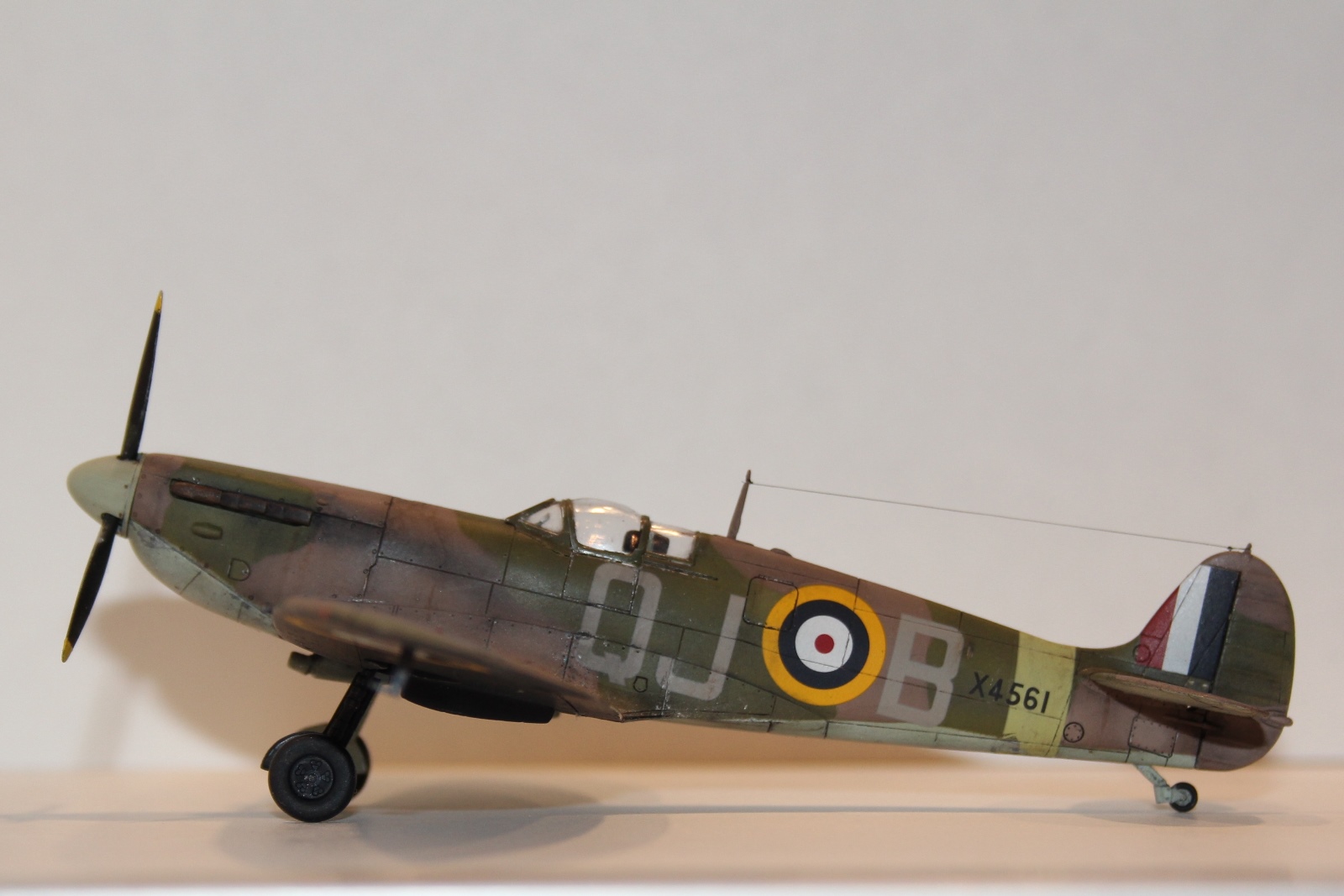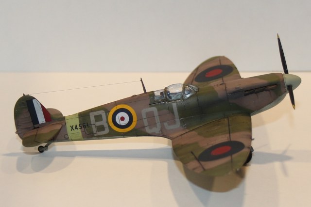данная модель имеет серийный номер X4561, QJ/B судя по нему принадлежащий 92 эскадрильи RAF, Но! видимо! самолета с таким номером не было, или он мало чем отличился - т.к. история (в сети) о нем умалчивает, т.е. прототипа не найдено, найден аналог и даже с историей: