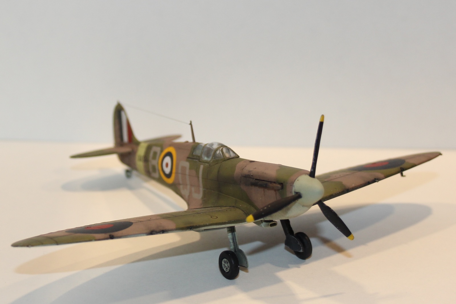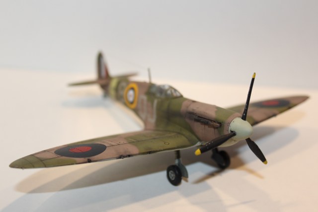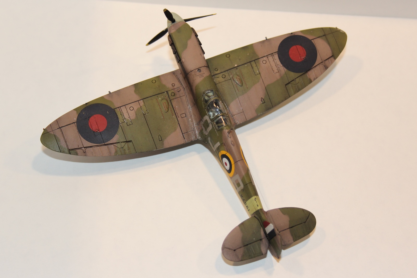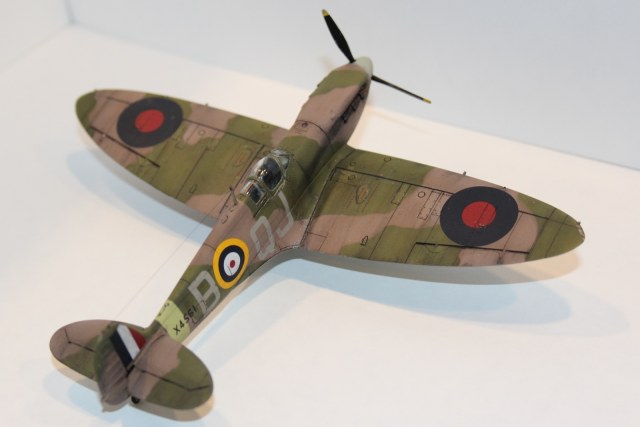 данная модель имеет серийный номер X4561, QJ/B судя по нему принадлежащий 92 эскадрильи RAF, Но! видимо! самолета с таким номером не было, или он мало чем отличился - т.к. история (в сети) о нем умалчивает, т.е. прототипа не найдено, найден аналог и даже с историей: