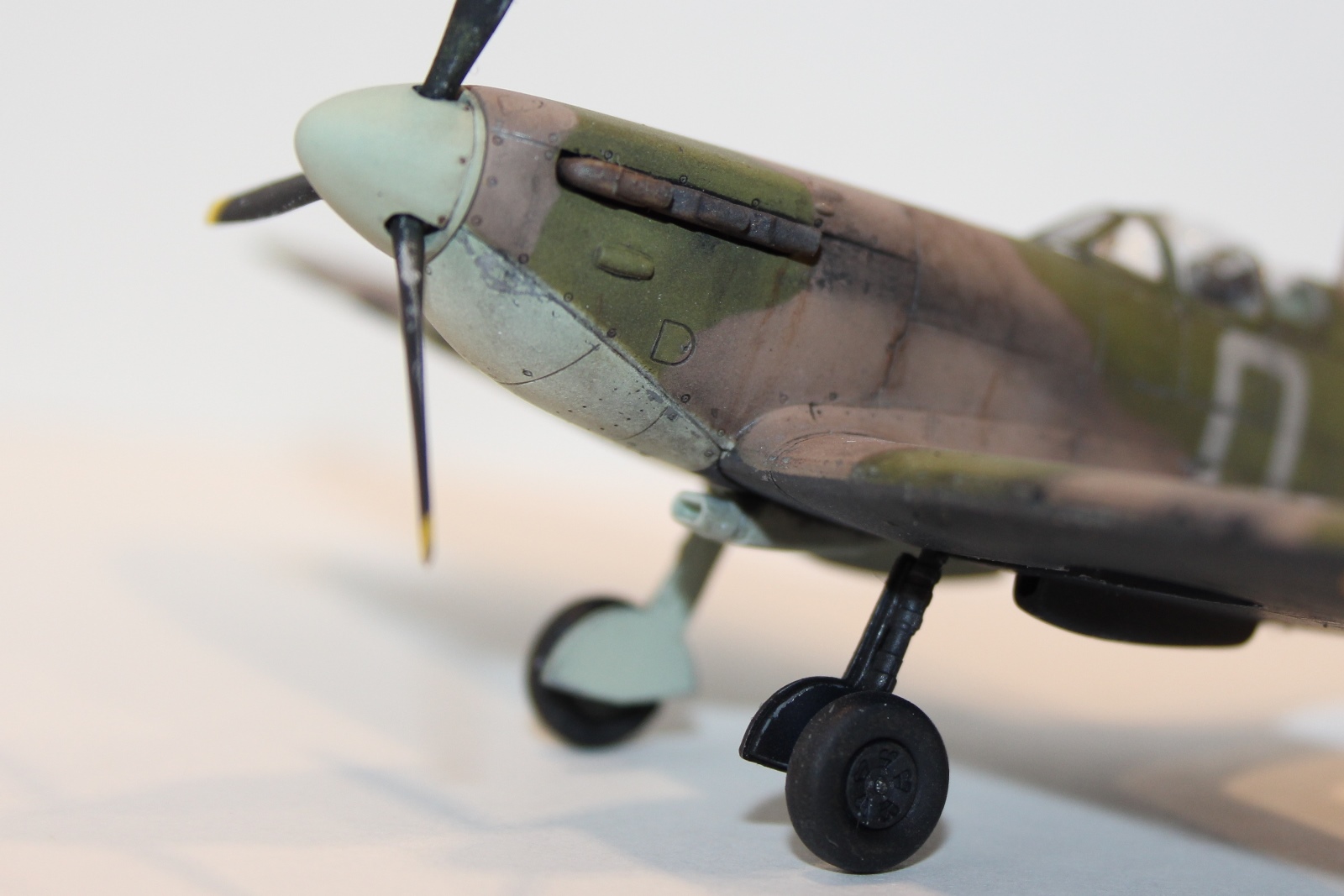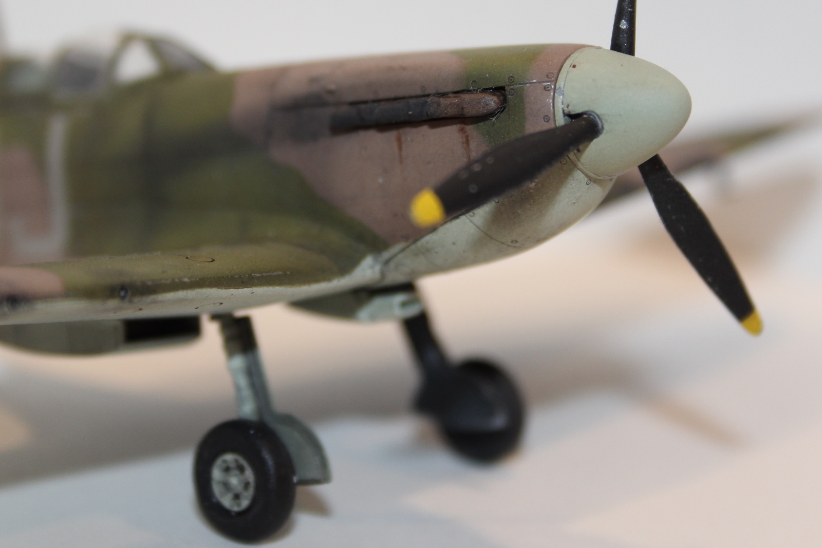 Модель на порядок лучше ваших предыдущих, хотя и здесь присутствует некая "загаженность, впрочем, уже в меньшей степени. Что радует, практически точно повторили реальные границы полей камуфляжа, хотя и есть небльшие отступления от канонического шаблона. Что не понравилось точно - что в цвета DG, DE не попали абсолютно, неправильно сделана антена и что самое странное - металлические сколы на деревянном винте.