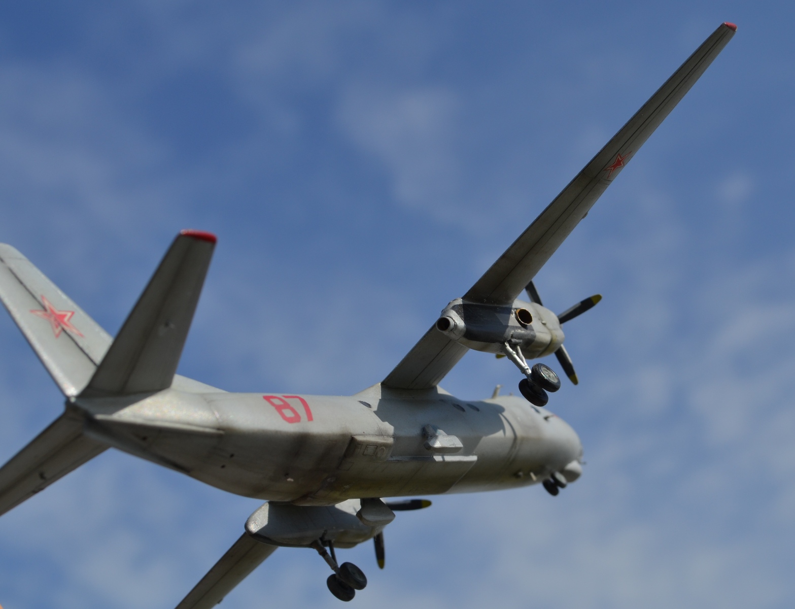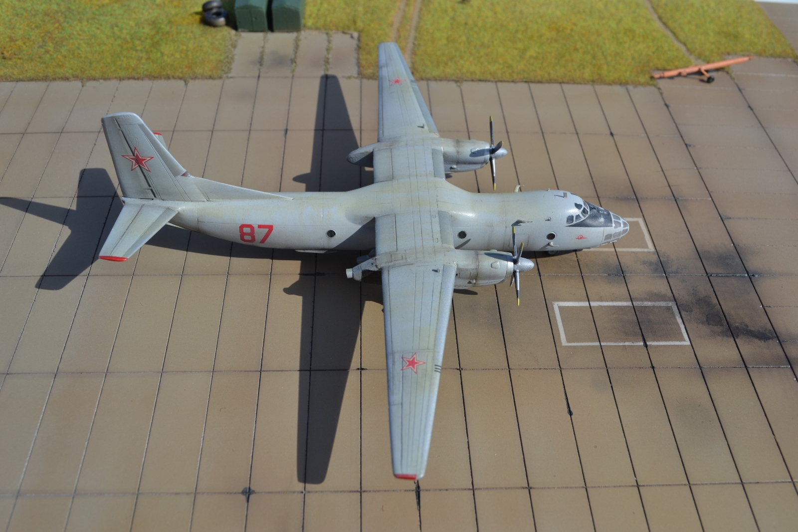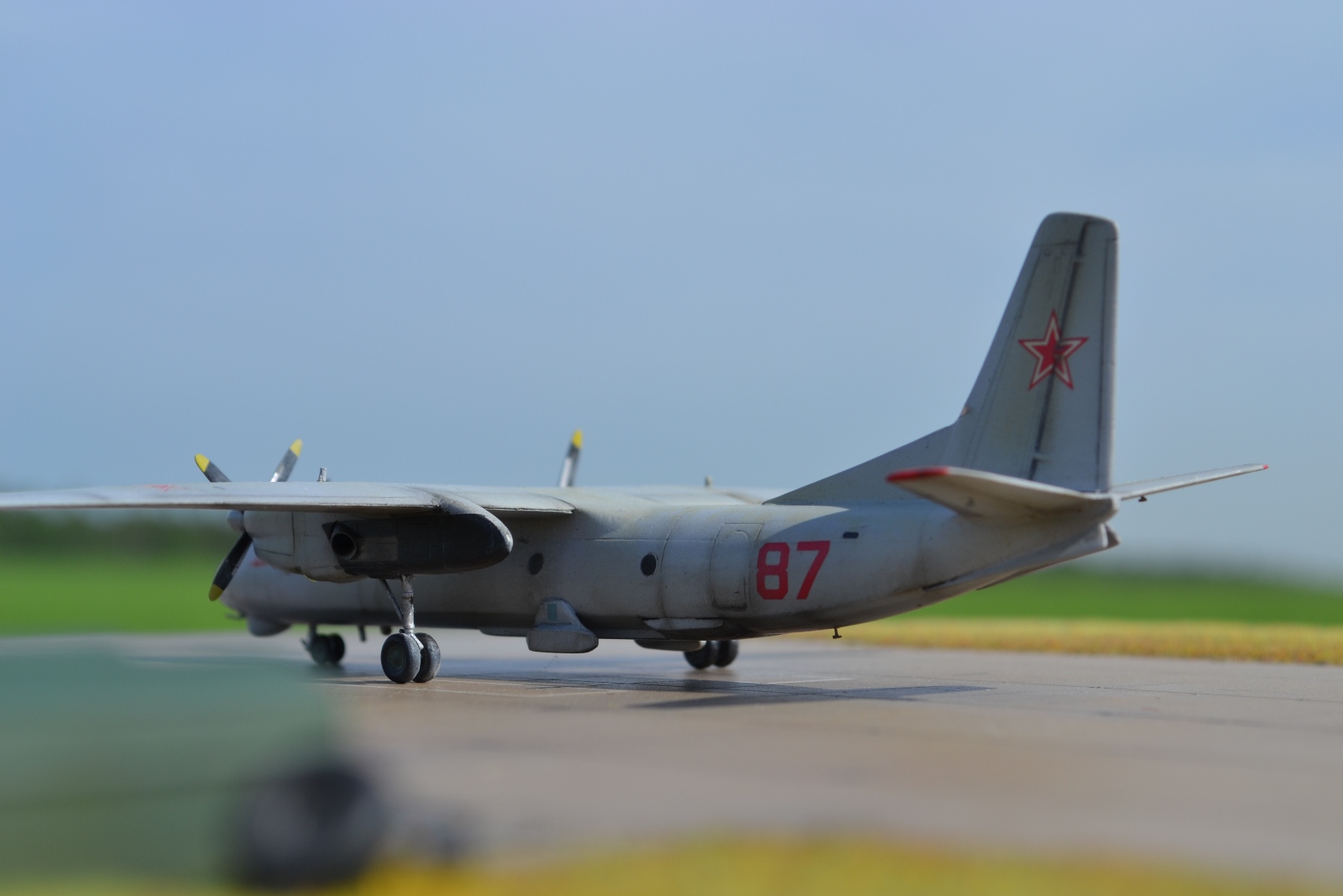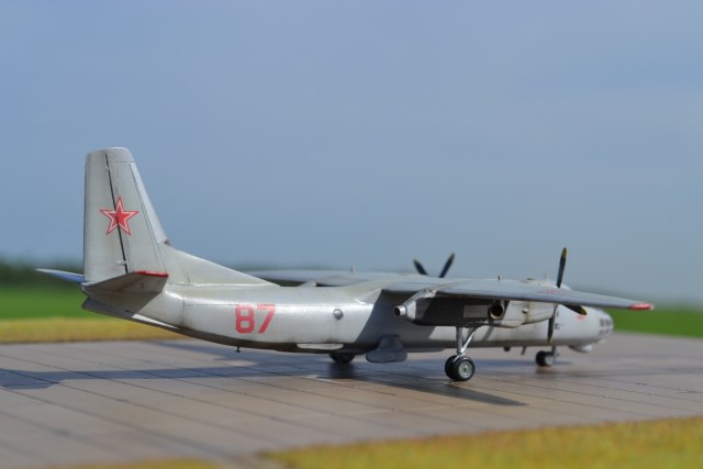 Собрал модель фоторазведчика Ан-30б времен войны в Афганистане. Сборка прошла без проблем. Добавил БАНО, антенны, блоки отстрела ловушек. Очень пригодились маски остекления от Алексея Бацких, ибо веранду штурмана своими силами мне не замаскировать.Коки винтов смоляные- выручил Андрей Пчельников, за что ему огромное спасибо! Окраску сделал серенькую ВВС СССР (очень хотелось знак "отличный самолет" под фонарем). Красил тамиевским серым грунтом, о чем сильно пожалел, так как прешейдинг весь исчез, пришлось очень сильно попачкать пастелью. Попробовал надуть аэром проплешины желтого грунта. Сверху-матовый лак от Тамии. На фотосесии отвалилась дека с левого блока ЛТЦ и забыл подрезать ПОС правого винта. Приятного просмотра!