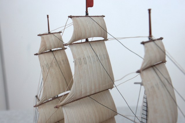 Паруса на модели сделаны пластиковые - выглядит вполне достоверно, если не учитывать их чрезмерную толщину. Я сточил их по краям, чтобы немного уменьшить визуально.