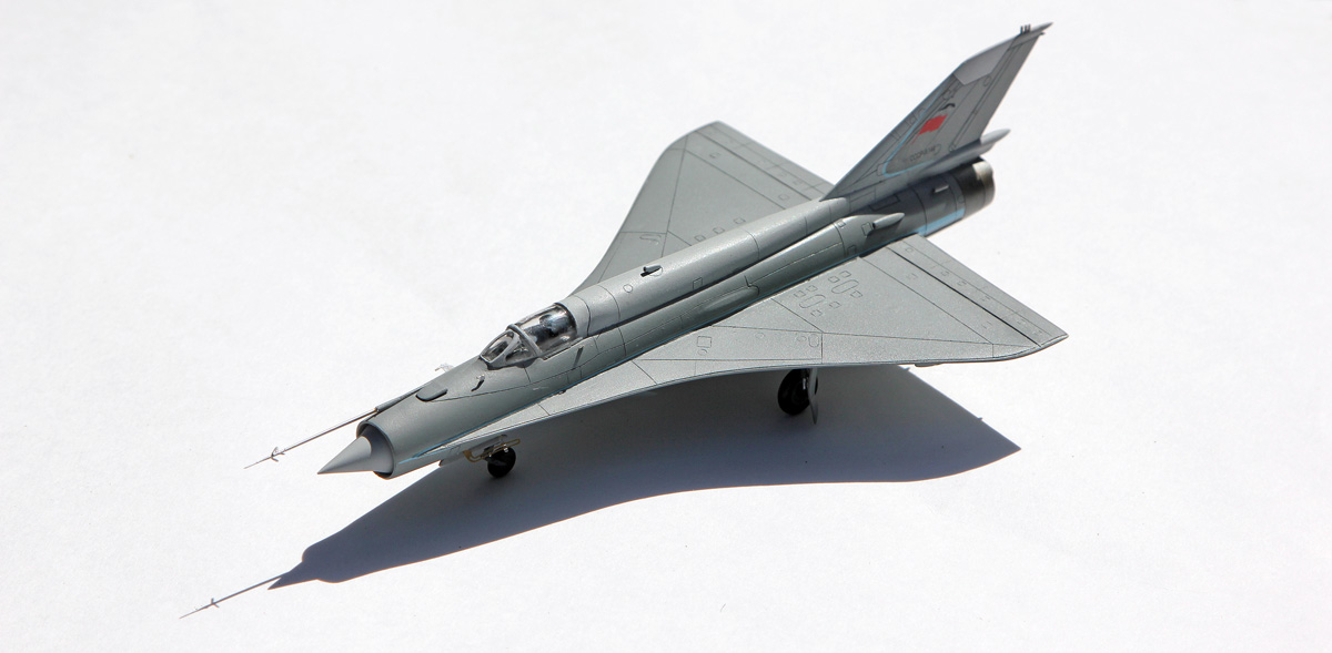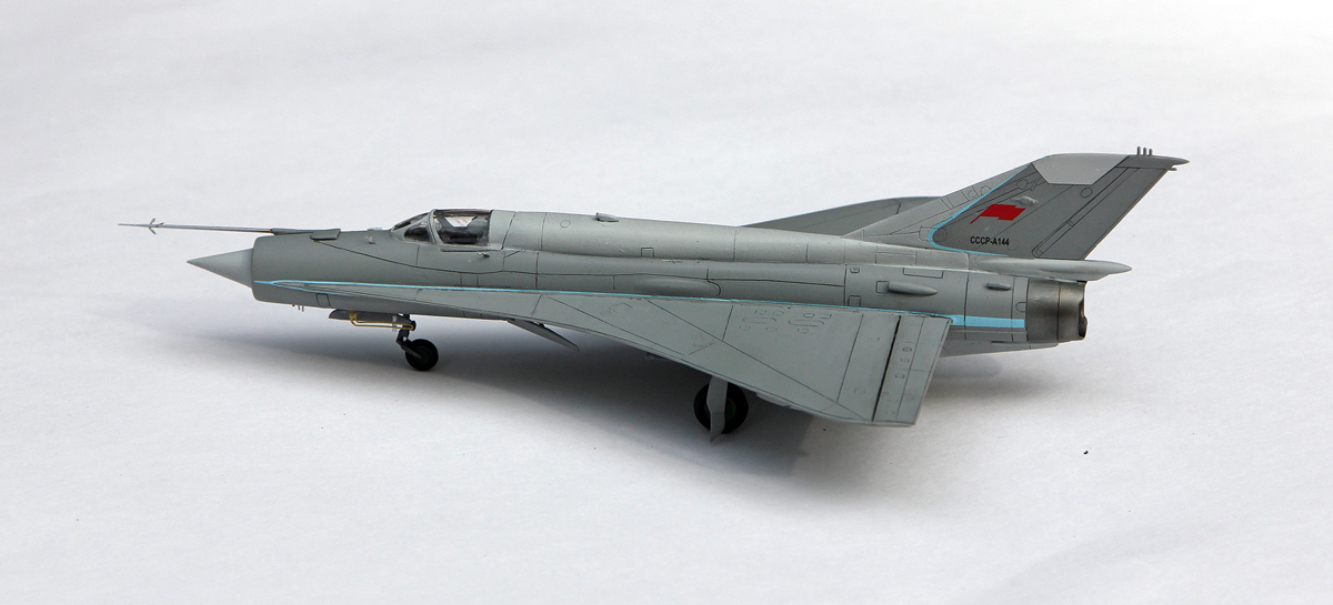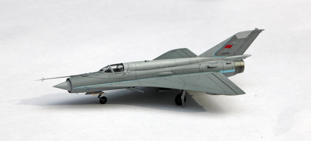 Представляю вам еще одну мою модель, хорошее ЛНД, серебрящиеся декали. Сборка изкоробочная за несколькими исключениями - хвост и носовой конус от звездовского МиГ-21. ПВД от МастерМодель.