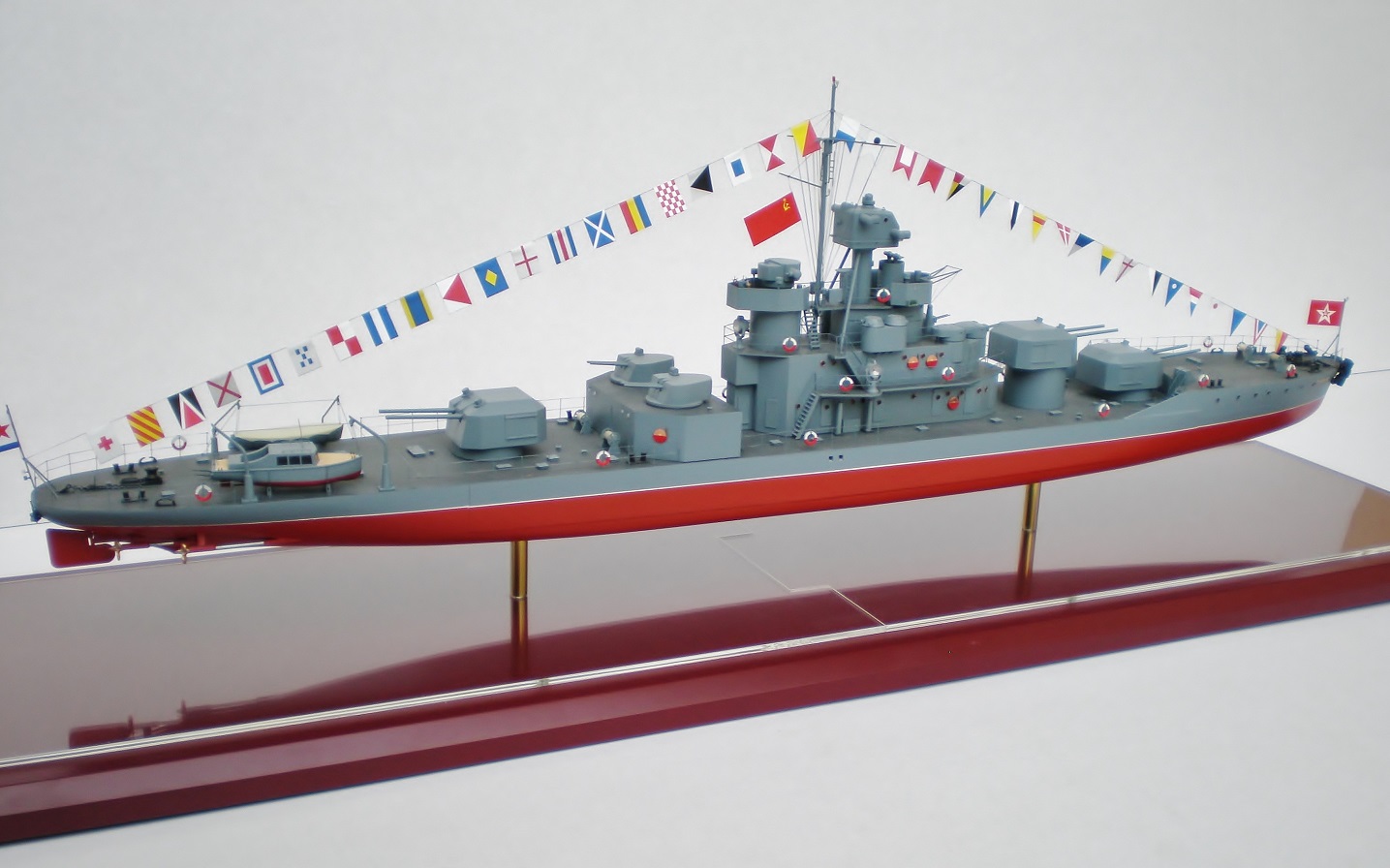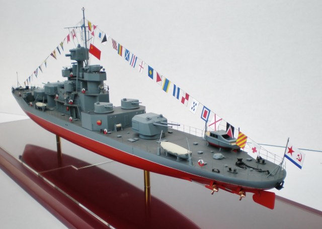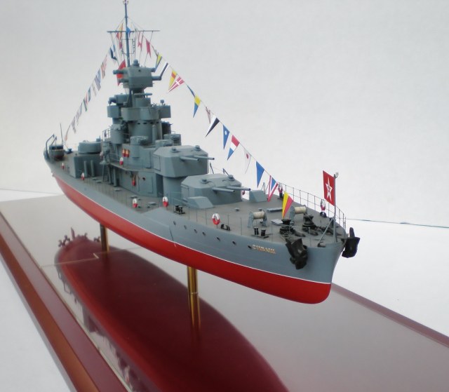 Юра, мои поздравления с завершением! Отличный корабль получился. А вот прямые как таблички флаги (ВМФ и государственный) и гюйс - не понравились.