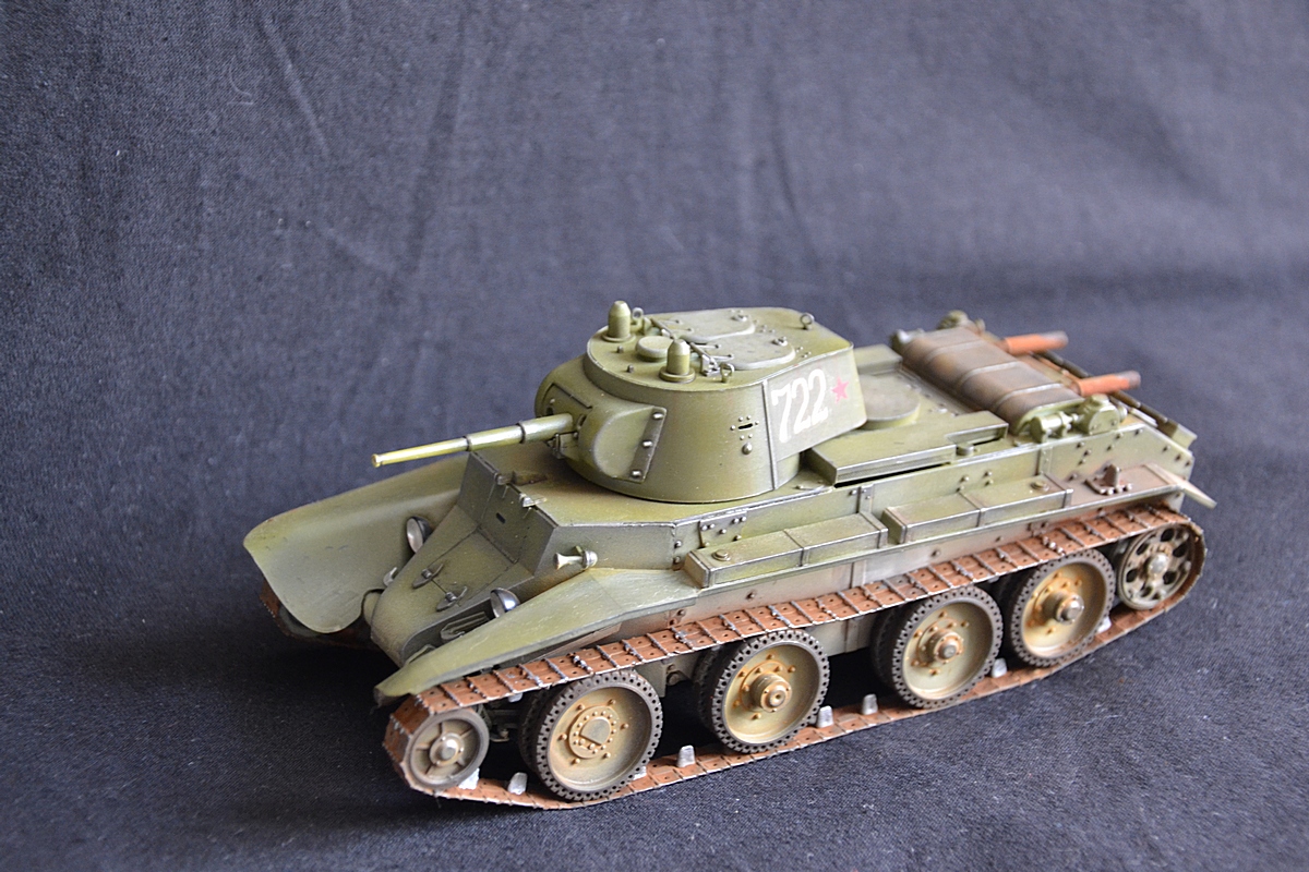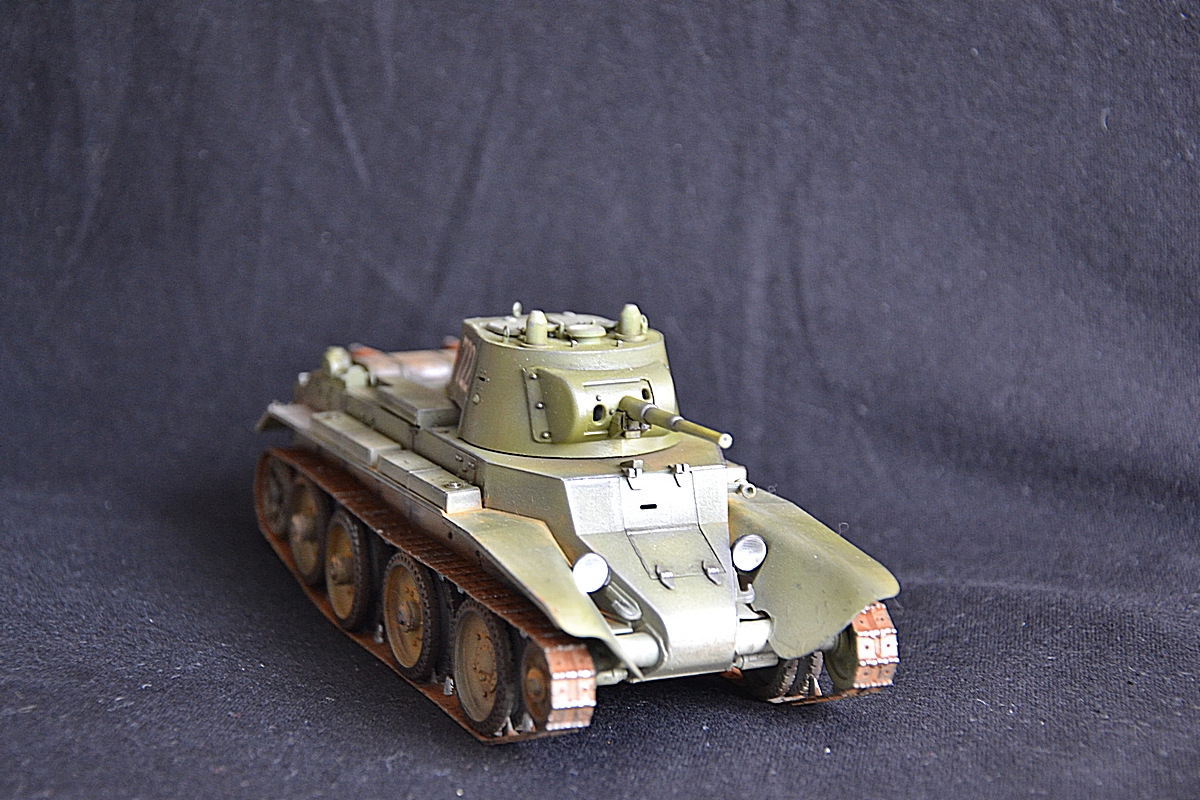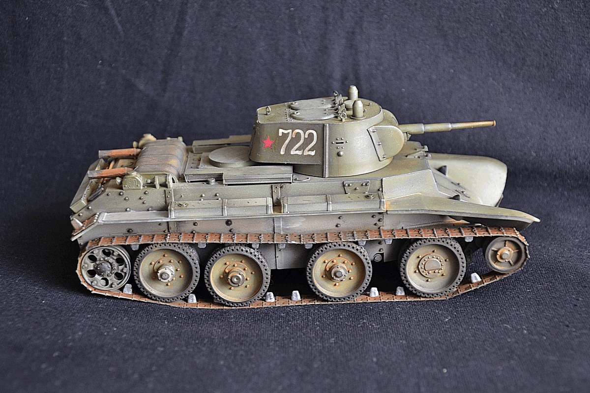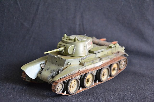 Добрый вечер. На этот раз собрал модель танка бт 7 с конической башней. Сборка оставила двоякое впечатление. Ну набор не для новичков. Так как инструкции почти нет. Танк делался в подарок, поэтому было решено оставить пластиковую решетку от производителя. Весь упор делал на покраску. Красил тамией плюс химия миг. Жду критики и советов.