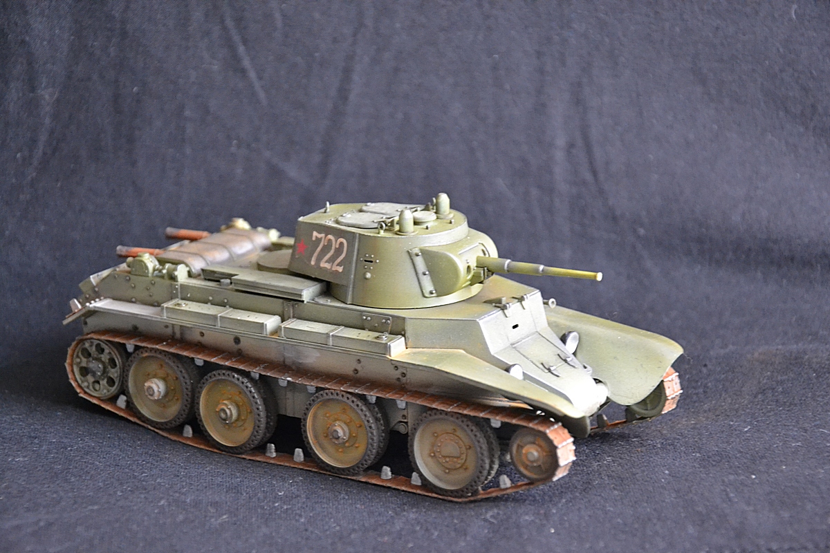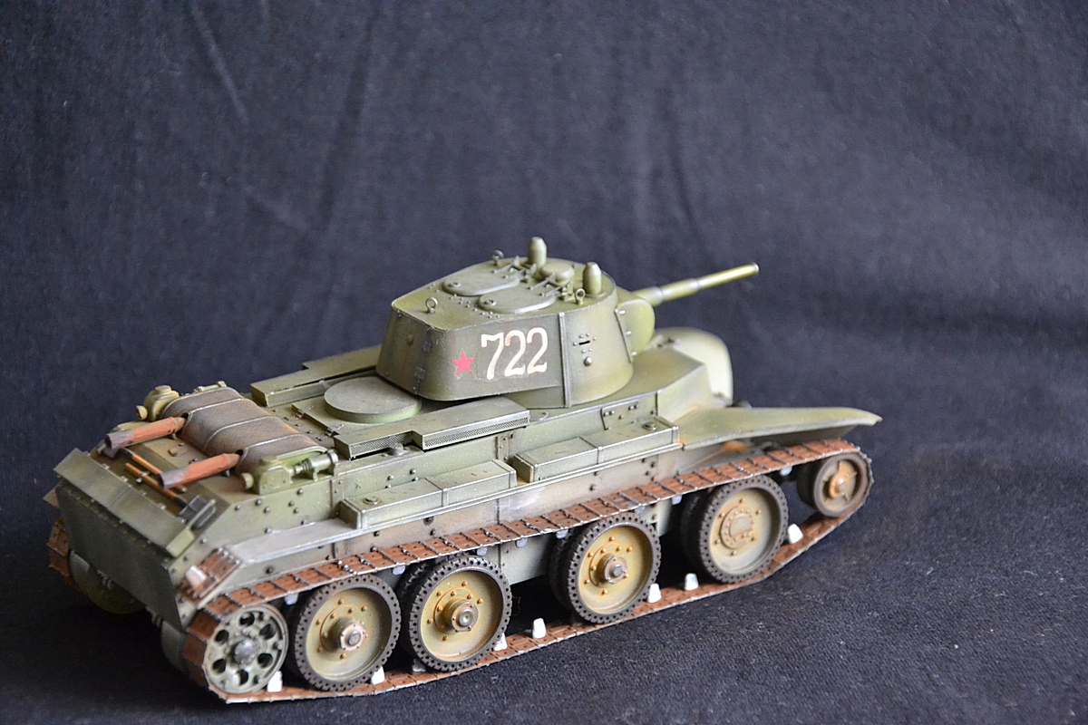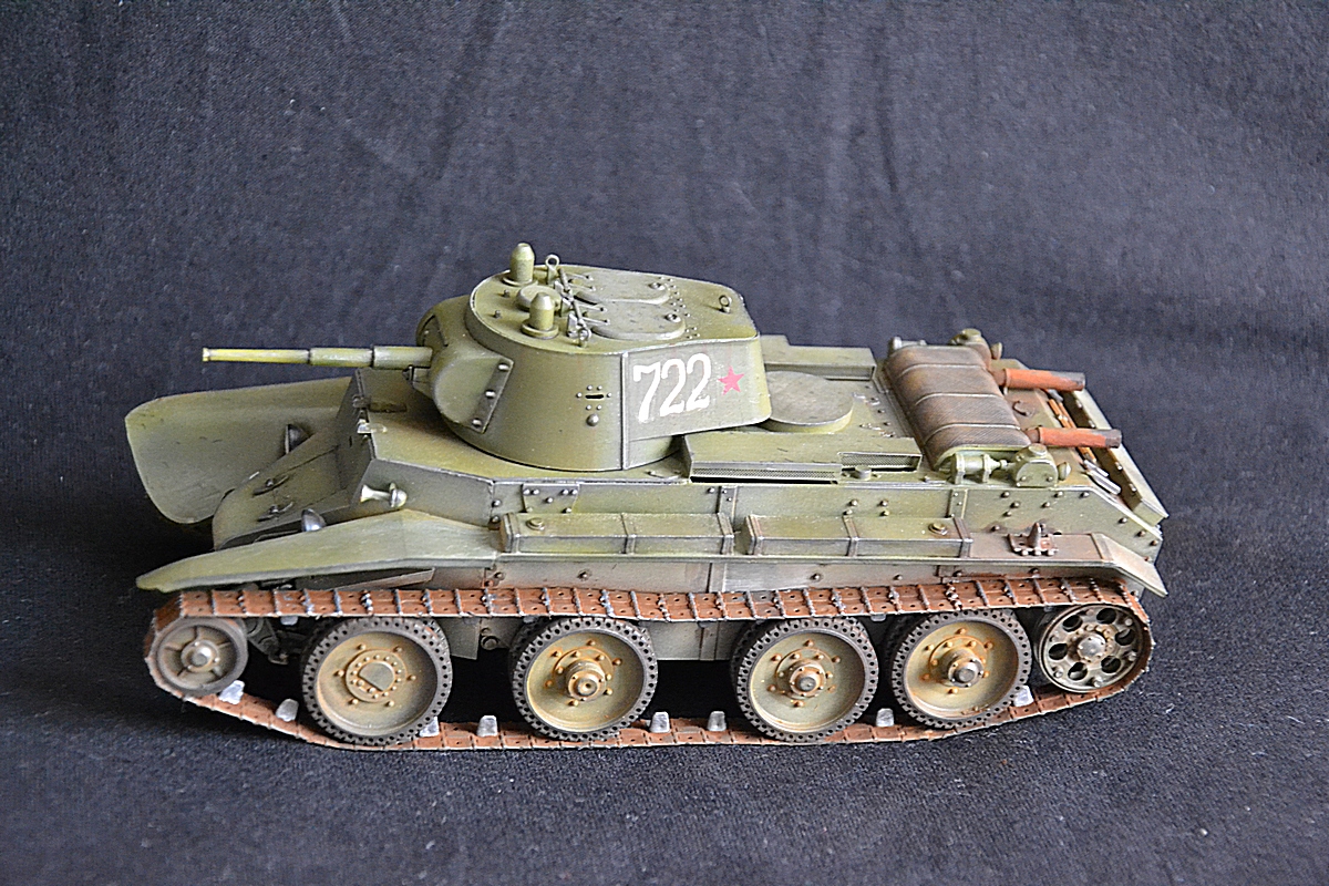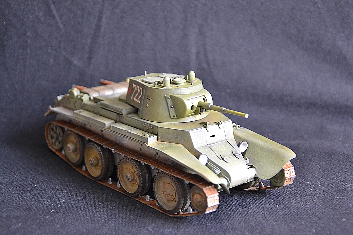 Добрый вечер. На этот раз собрал модель танка бт 7 с конической башней. Сборка оставила двоякое впечатление. Ну набор не для новичков. Так как инструкции почти нет. Танк делался в подарок, поэтому было решено оставить пластиковую решетку от производителя. Весь упор делал на покраску. Красил тамией плюс химия миг. Жду критики и советов.