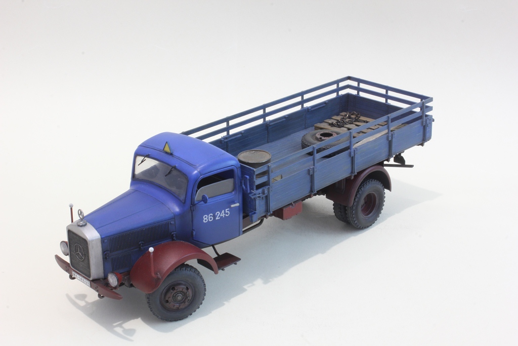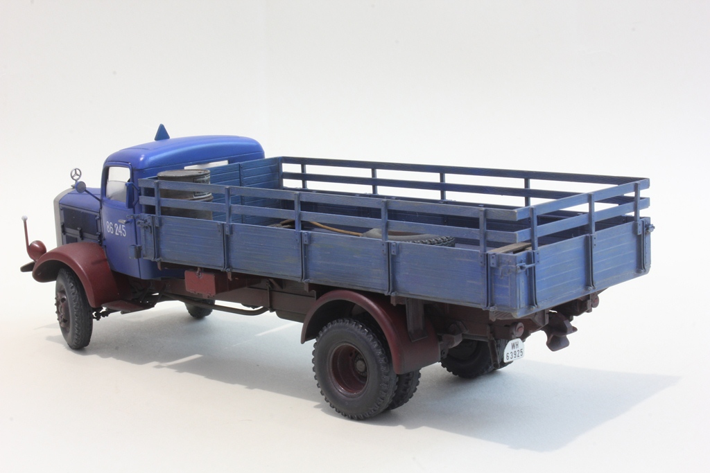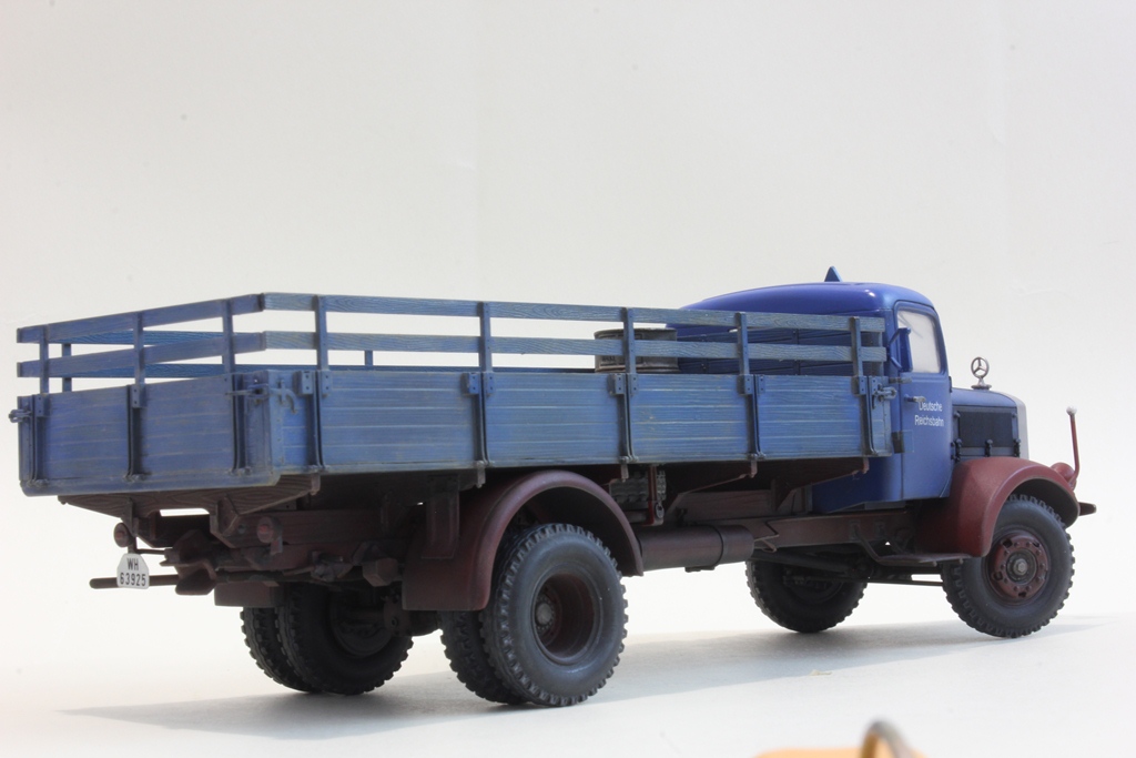 Отличная работа. Но, судя по номерному знаку, грузовик не гражданский, а Вермахта. А по декали на двери он вообще принадлежит немецкой железной дороге, которая точно не занимается утилизацией старых автомобилей)