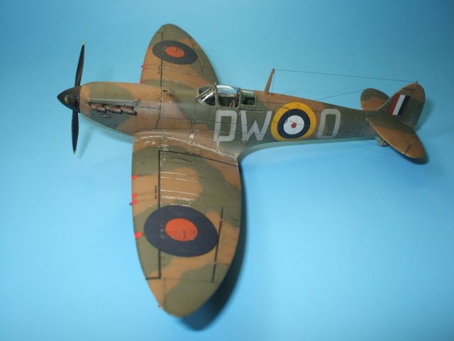 Отличный спитфайр, работа замечательная. Только зря Вы закрасили огонь распознавания за стойкой антенны, обтекатель должен быть прозрачным.