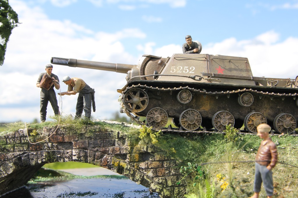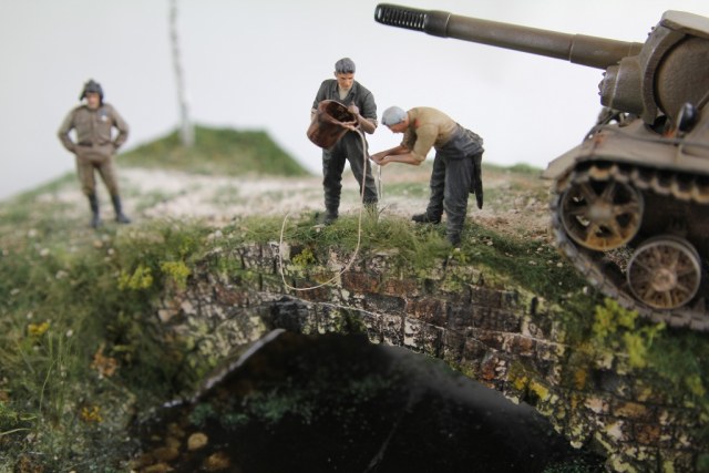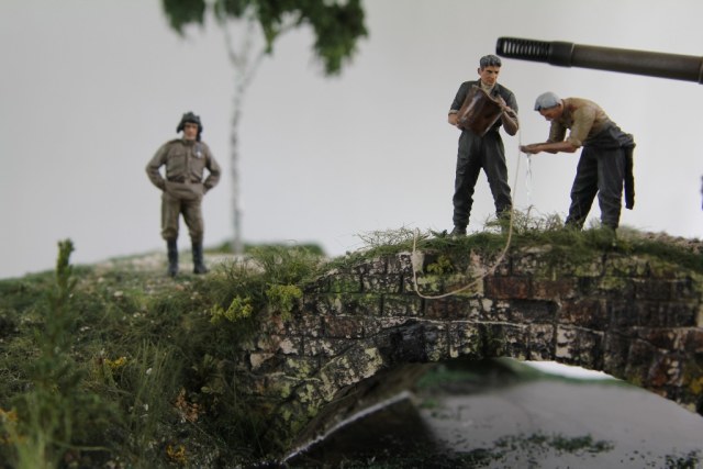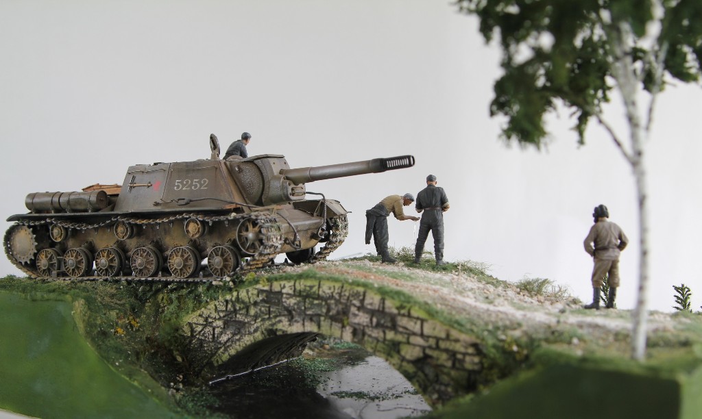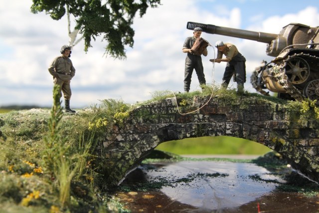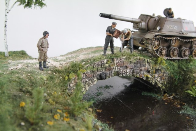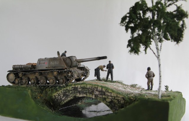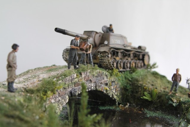Доброе время суток! Свершилось, наконец то я ее доделал! спешу поделится с вами коллеги, очередной диорамой. очень давно хотел сделать диораму с мостом ,ну вот как то и закрутился сюжет вокруг него. Мост делал из гипса ,трава из всех подручных материалов, вода в этот раз получилась не очень, сам испортил, в процессе пришлось маскировать ряской, ну и матовая немного получилась. Красил акрилом. Приятного просмотра!