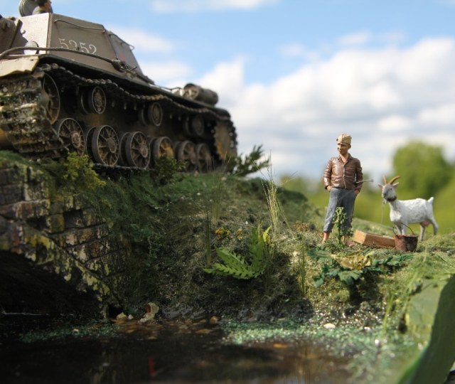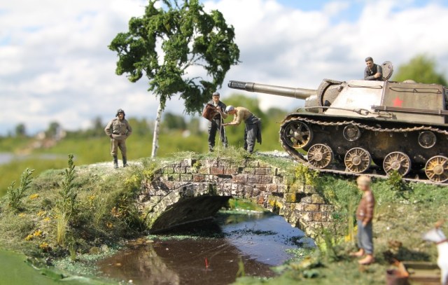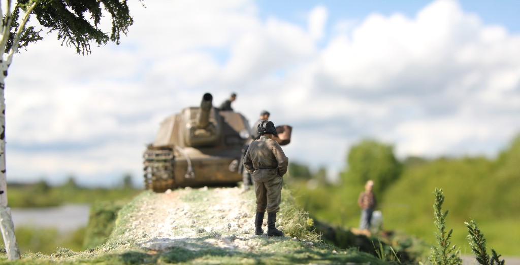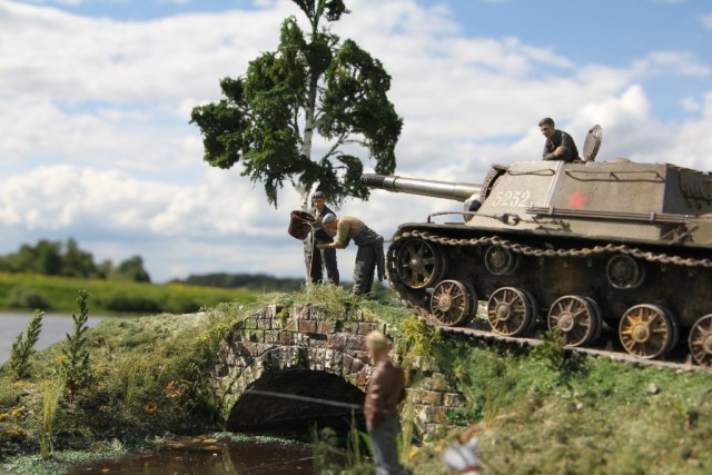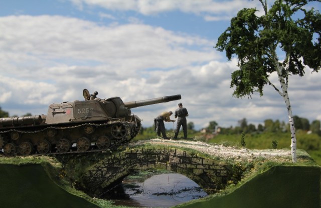 диорама просто бомба , захотелось на природу сразу. как помне только один минус - надо було гусиницы пустить по рельефу , а то как то ровно , как будто по столу едет , да и местами в воздухе висят