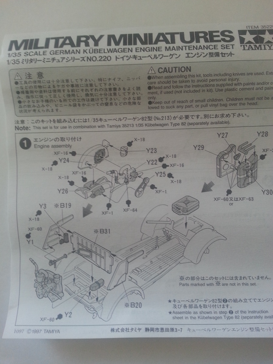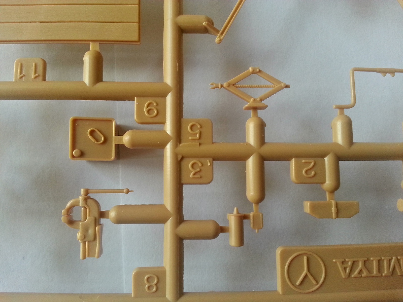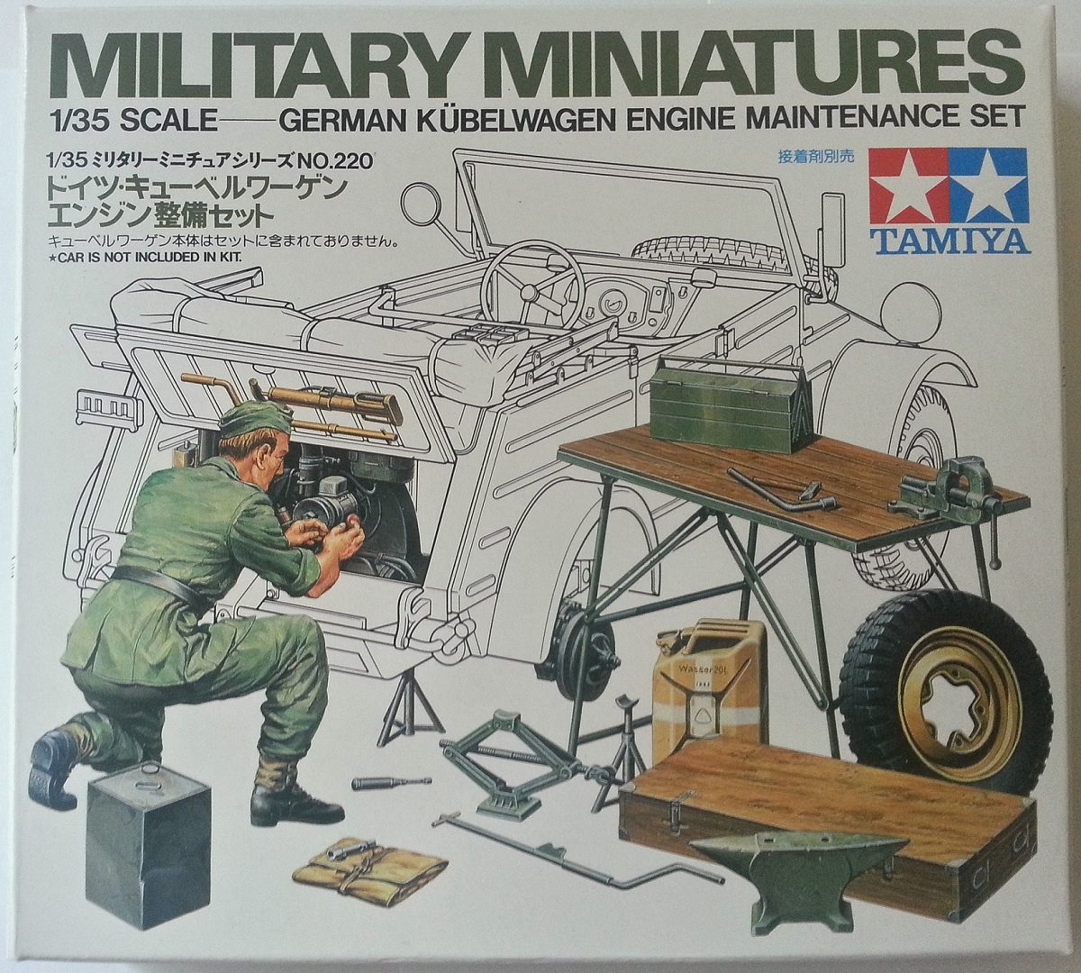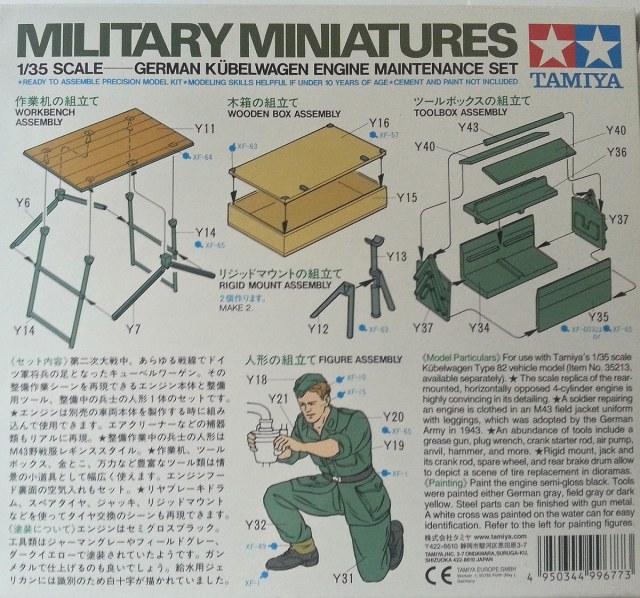 Набор от Тамии 1997 года, в наборе 2 литника на которых расположились часть двигателя, фигурка механика, стол, инструменты и ящик. Также есть две инструкции, одна на коробке другая на отдельном листе. Деталировка вполне достойная, стыкуемость идеальная. Покупался в мае 2015го за 415руб.