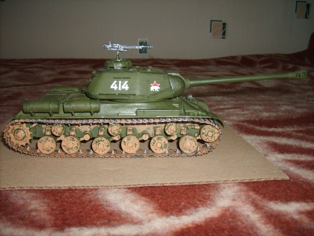 С января 1945 года на ИС-2 стали устанавливать крупнокалиберный пулемет ДШК. Боекомплект ДШК составлял 250 12,7 миллемитровых патронов в лентах в коробке, крепящейся к пулемету. Представлен ИС-2 88 Гвардейского танкового полка. Начало апреля 1945 года.
