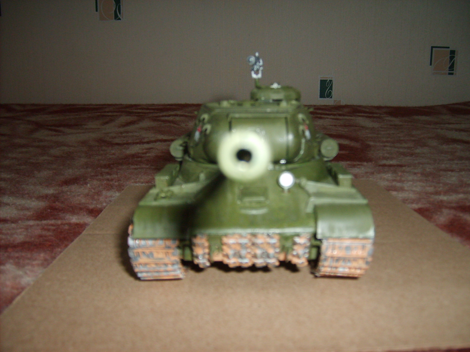 Приветсвую всех любителей и почитателей стендового моделизма! Для сборки использовались детали фирмы "Звезда", покраска осуществлялась мною вручную кистью, красками вышеупомянутого производителя (предварительно обезжиривались литники). Пришлось повозиться с катками и гусеницами при установки их на первые, но с задачей справился, в целом к моему удивлению,вопреки ожиданию касаемо того, что придется много подтачивать и подгонять детали вручную так как заводское изготовление порой до сих пор оставляет желать лучшего - на сей раз повезло обошелся малой кровью:)