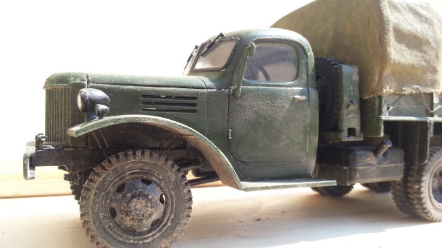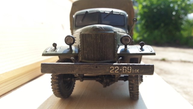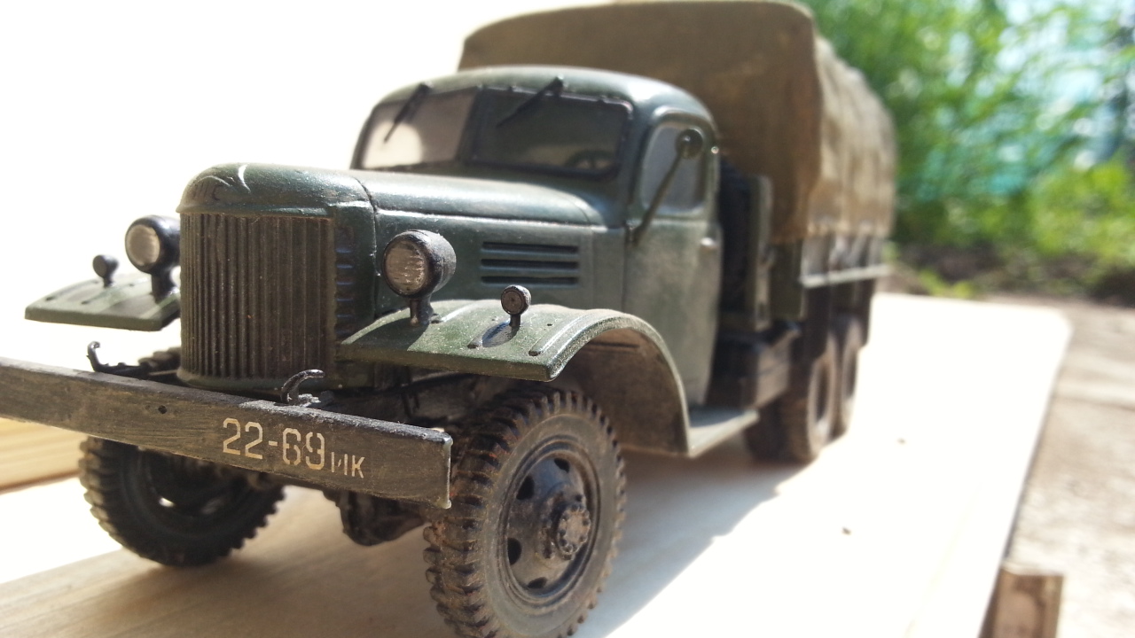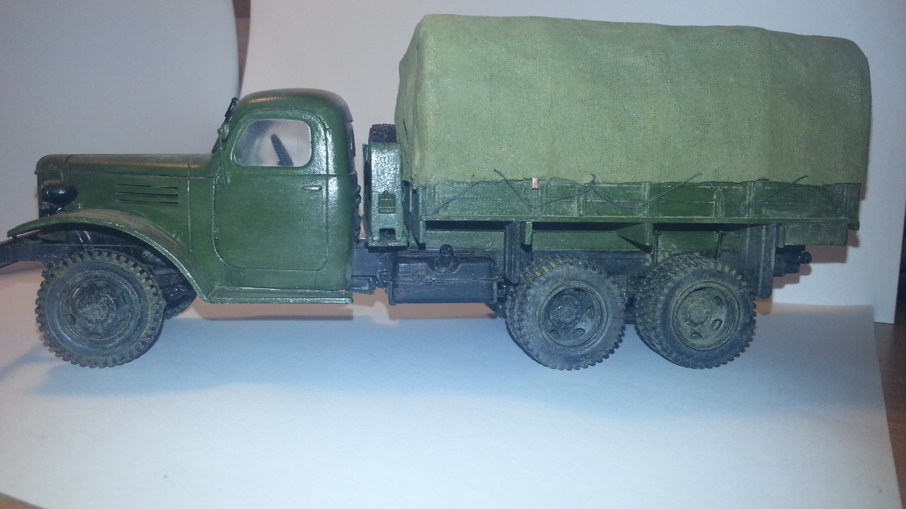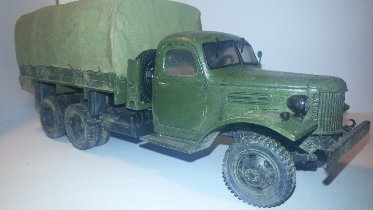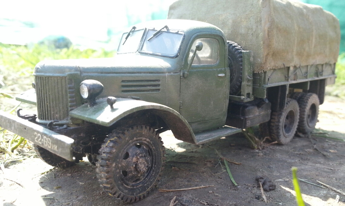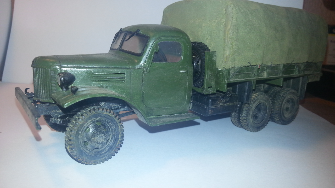 Здравствуйте! Собрал модель грузовика Зис. Модель собрана "из коробки". От себя добавил только тент.Решётки на фарах не стал прикреплять(из набора не очень, можно считать что потерялись во время эксплуатации автомобиля) Окрашивал красками Звезда и Tamiya.