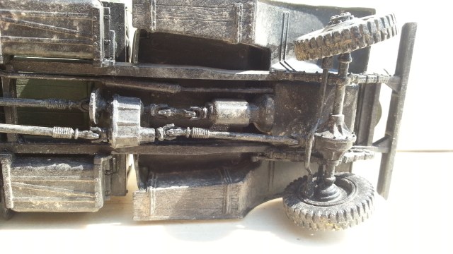 Жирновато краска легла. Я так понял, кистью мазюкали? И не сильно увлекайтесь обтирать модель - обтирайте так, чтобы не просто заполнить фактуру модели, а именно выделить ту или иную геометрическую объёмность.