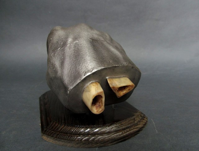Элементарно, оригинал изделия-то есть собственную руку окунал по очереди в теплый парафин и холодную воду, и так слой за слоем получилась твердая перчатка, после полного отвердения парафина, перчатку разрезал по бокам и вытащил кисть, а потом заклеил места разреза