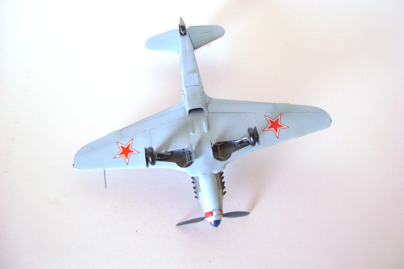 На нижних поверхностях крыльев остались две щели, которые так и не удалось зашпаклевать. Думал, что будет нормально держаться и не приклеил нижнюю деталь. По краям она выступала. Шпалкевание ничего не дало, так как она немного ходит вверх-вниз. Щели остались.
