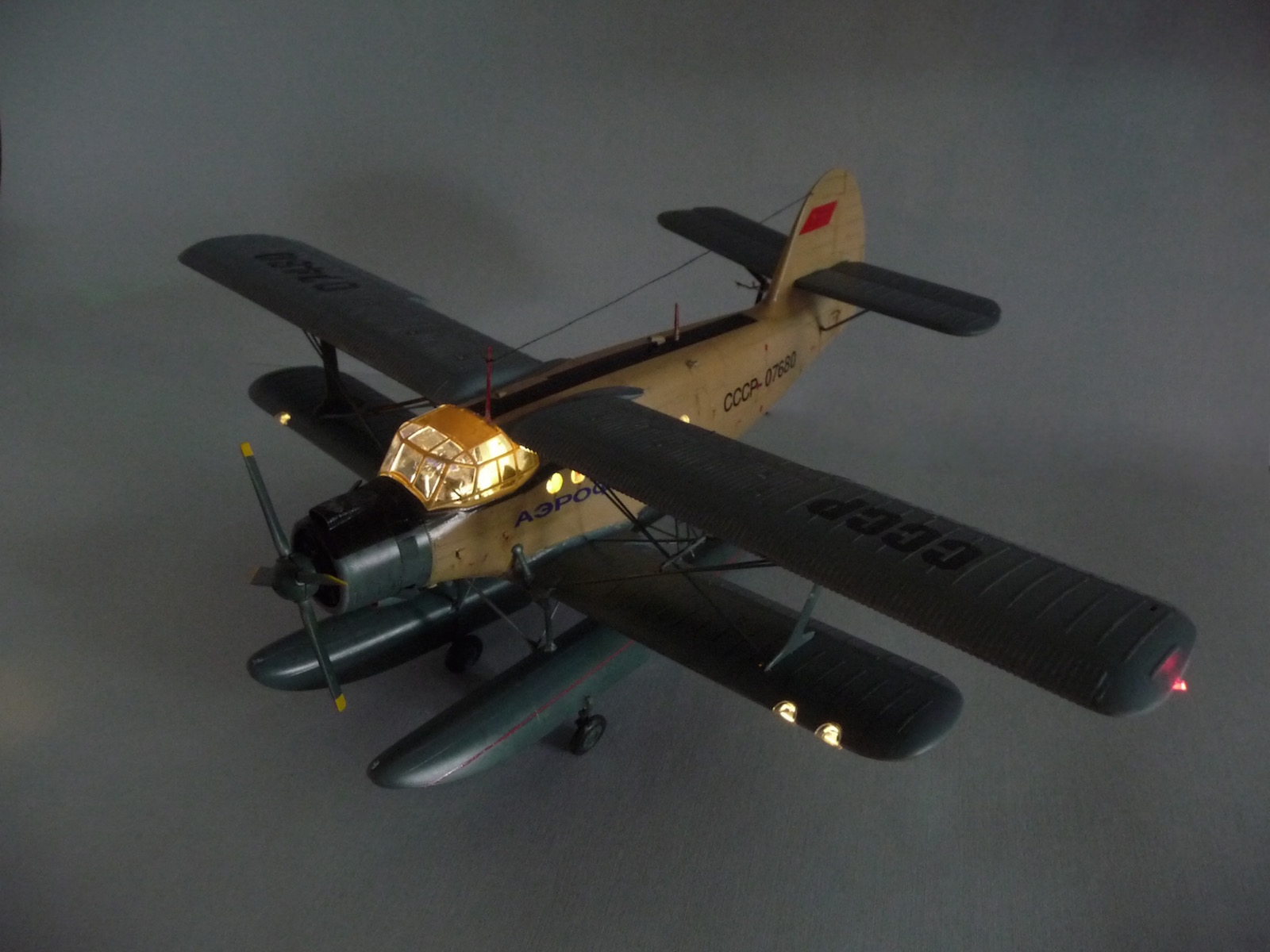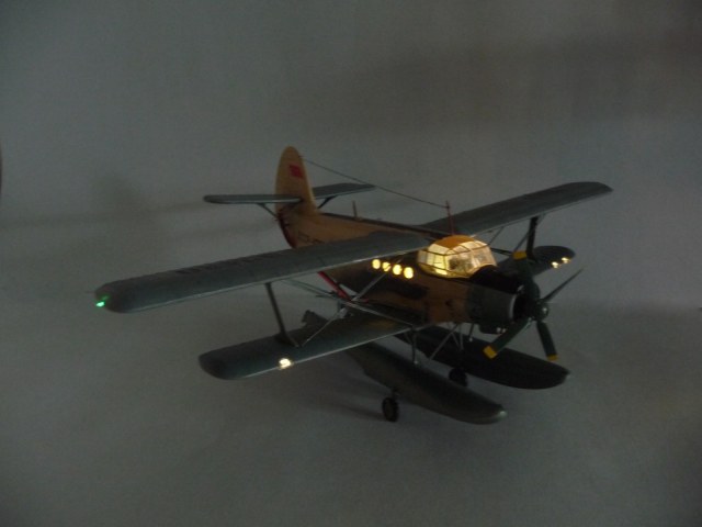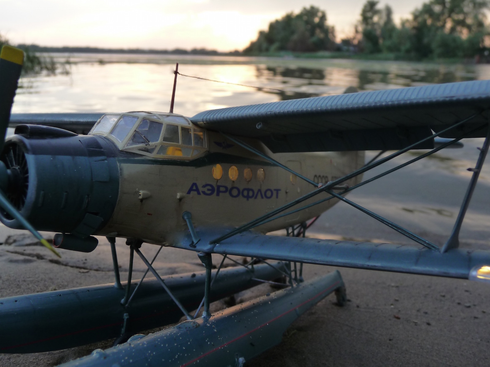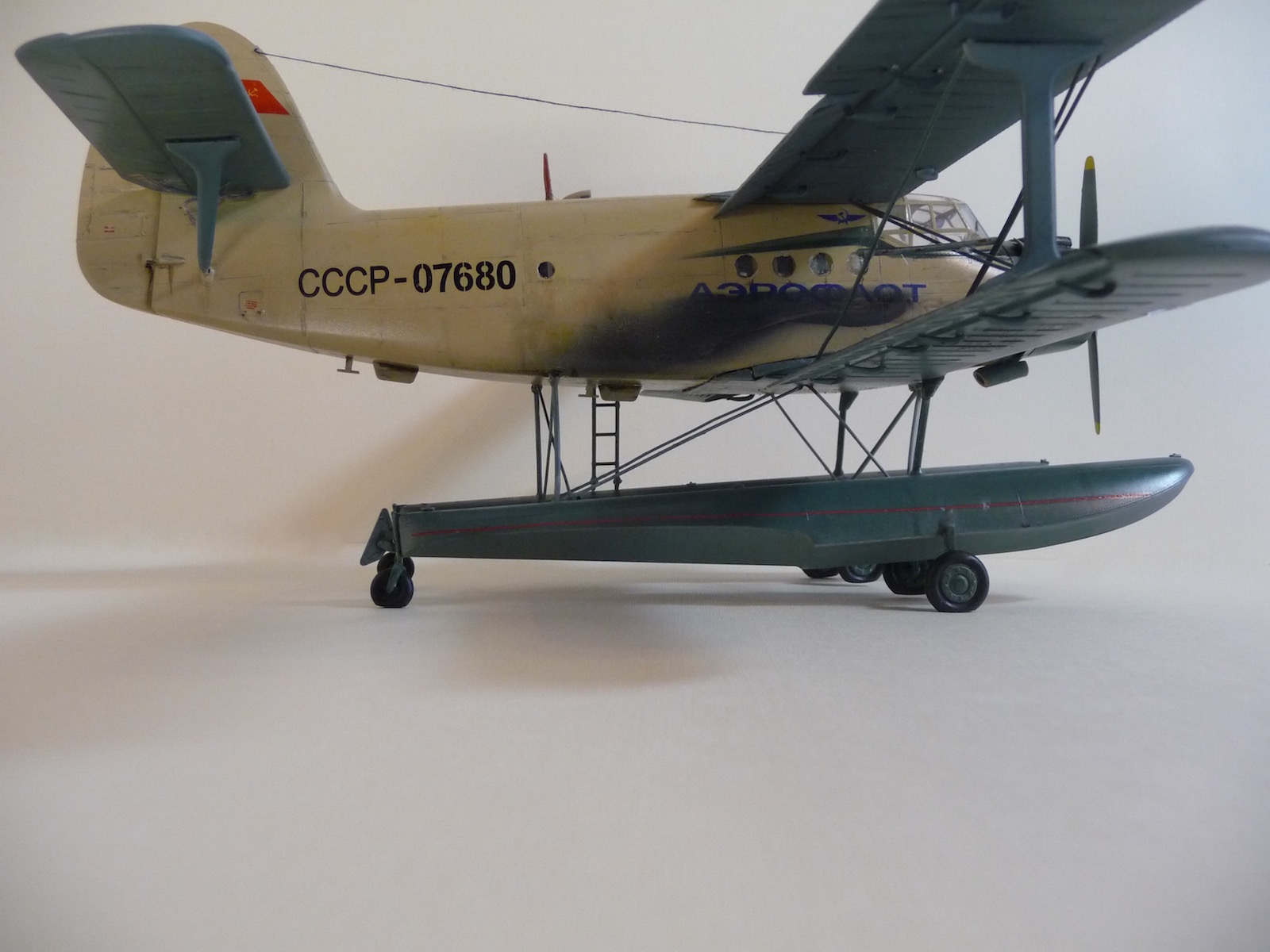 Юрий, хорошая модель, хотя в матчасти есть ошибки. Верхняя часть остекления кабины д.б. прозрачной. Стойки-опоры поплавков должны иметь наклон в обратную сторону. Характерная для Ан-2 V-образность крыльев практически отсутствует. Лесенка выставлялась после приземления, т.е. приводнения. И ещё...
