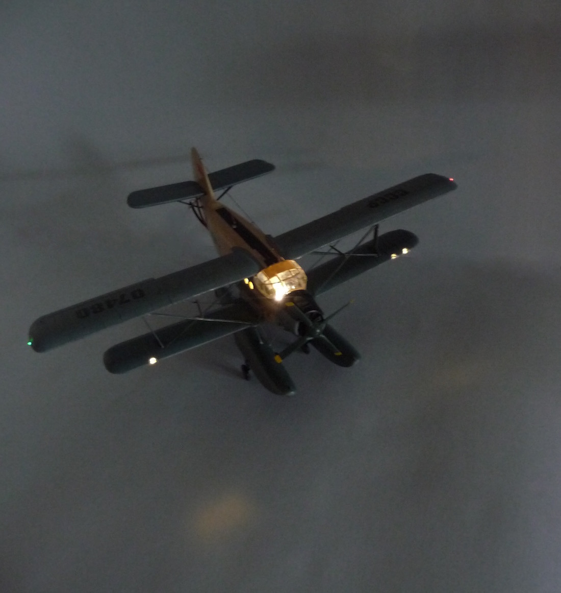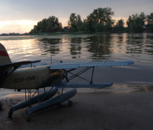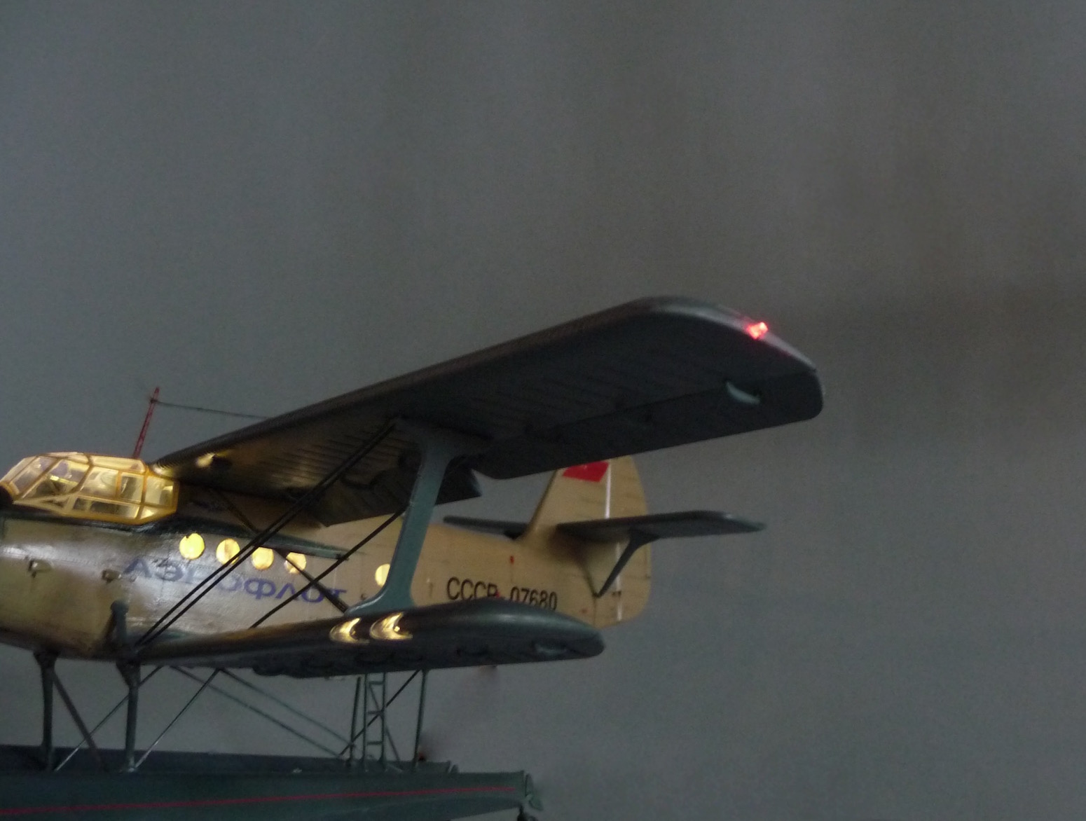 Юрий, хорошая модель, хотя в матчасти есть ошибки. Верхняя часть остекления кабины д.б. прозрачной. Стойки-опоры поплавков должны иметь наклон в обратную сторону. Характерная для Ан-2 V-образность крыльев практически отсутствует. Лесенка выставлялась после приземления, т.е. приводнения. И ещё...
