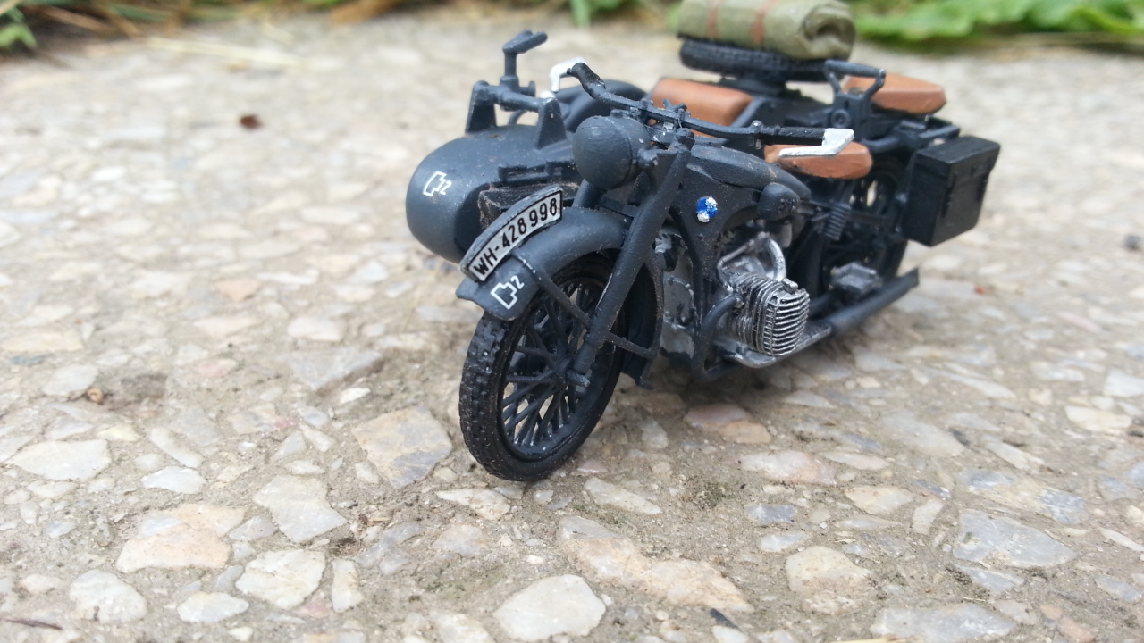 Мотоцикл бмв р-12. От себя ничего не добавлял.Окрашивал красками тамия и звезда.В целом модель оставила хорошие впечатления.Жду ваших комментариев.