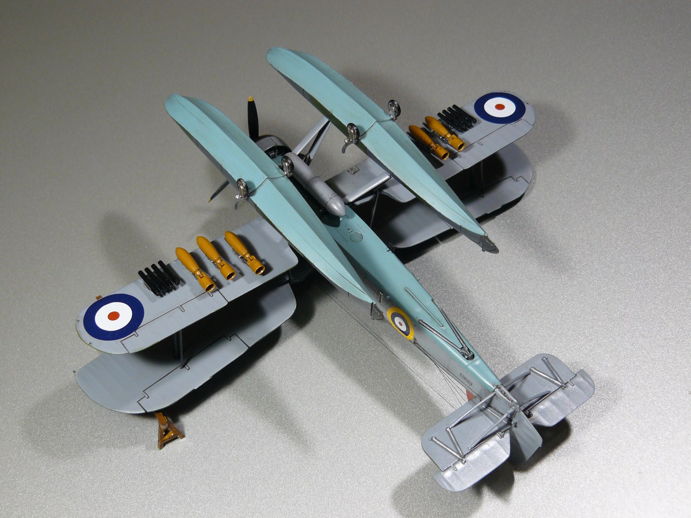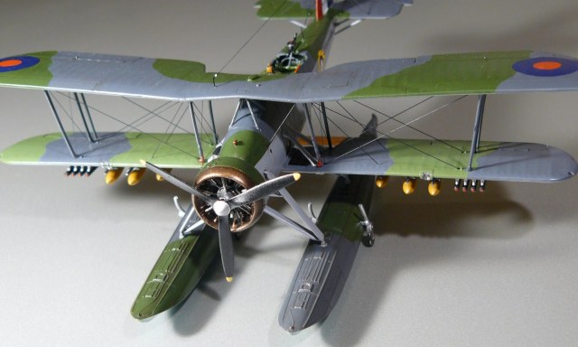 Представляю вам очередную работу, Fairey Swordfish MK.I floatplane, от Airfix. Поплавковая версия знаменитой "авоськи", применялся как катапультный и базовый разведчик, корректировщик, охотник за лодками. Самолет известный всем, и растекаться по описанию я думаю не имеет смысла)
