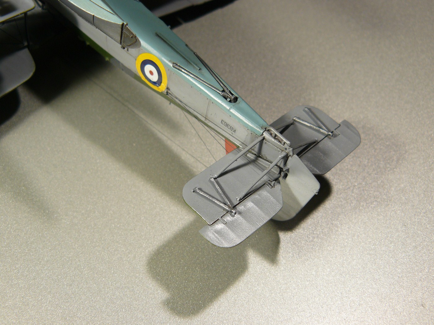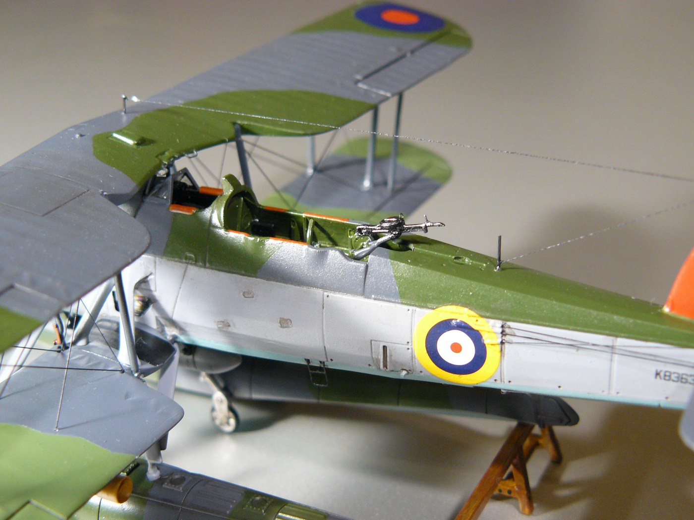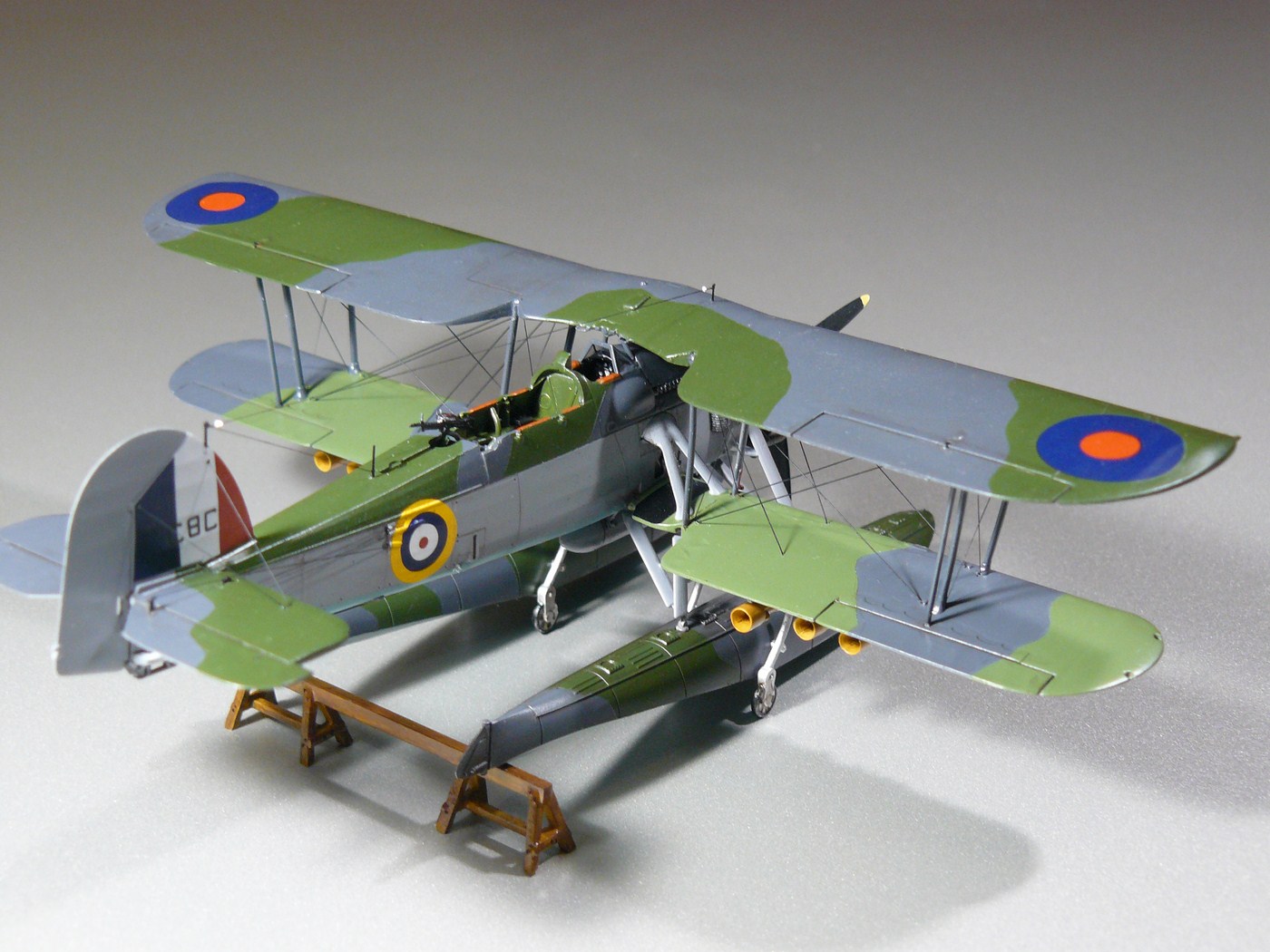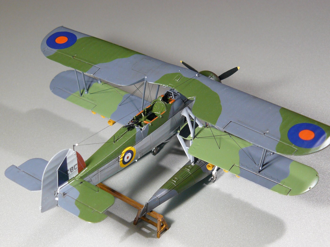 Модель изначально строилась в рамках группбилда, потом работа зачахла, и только теперь завершена. Первая половина стройки показана тут http://karopka.ru/forum/forum189/topic19084/ . Пластик отличный, в принципе позволяет обойтись изкоробочной сборкой, я немного дополнял фототравление от АСЕ. Решил делать в варианте "на козлах") Собирал как есть, добавил только травленые поручни, ступеньку, мушки у пилота и стрелка, и пару мелочевок в кабине пилота. Растяжки - леска 0,06 и 0,1 мм. Окраска как всегда, Валлехо и Футура. Представленный борт - К8363/С8С "Mitzi", бортовой самолет линкора "Вэлиант", июль 1940г. Полученным результатом я не очень доволен, но с учетом долгостроя и "трудности рождения" удовлетворение от проделанной работы есть)